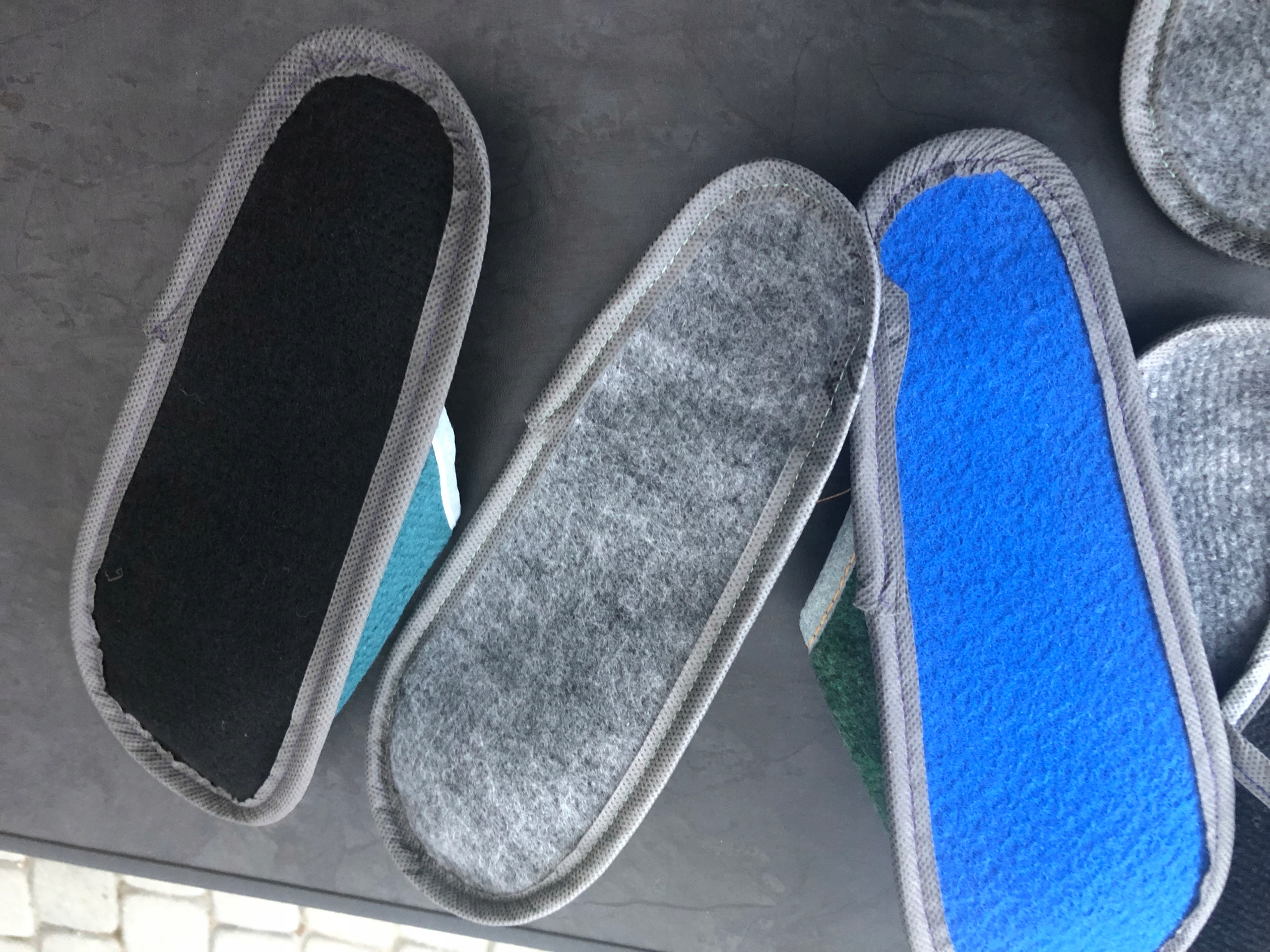 Виготовлені з повсті або повстяних килимів із зашитими краями.
