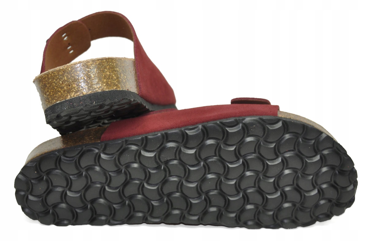 - підошва - середина - з пробки з рельєфними краями і виточками на середині стопи і під носками. Бортик захищає стопу від травм, а опуклість під пальцями утримує їх у правильному положенні. Опора в середній частині стопи спрямовує тиск від центру до передньої частини стопи. Підтримка поздовжнього і поперечного зводу стопи стабілізує п'яту. Виїмка під п'ятою забезпечує надійну підтримку. Комбінація пробки та поролону на нижній частині є надзвичайно гнучкою, а оброблена замшею створює оптимальну форму для стопи та створює правильний клімат і комфорт для шкіри.