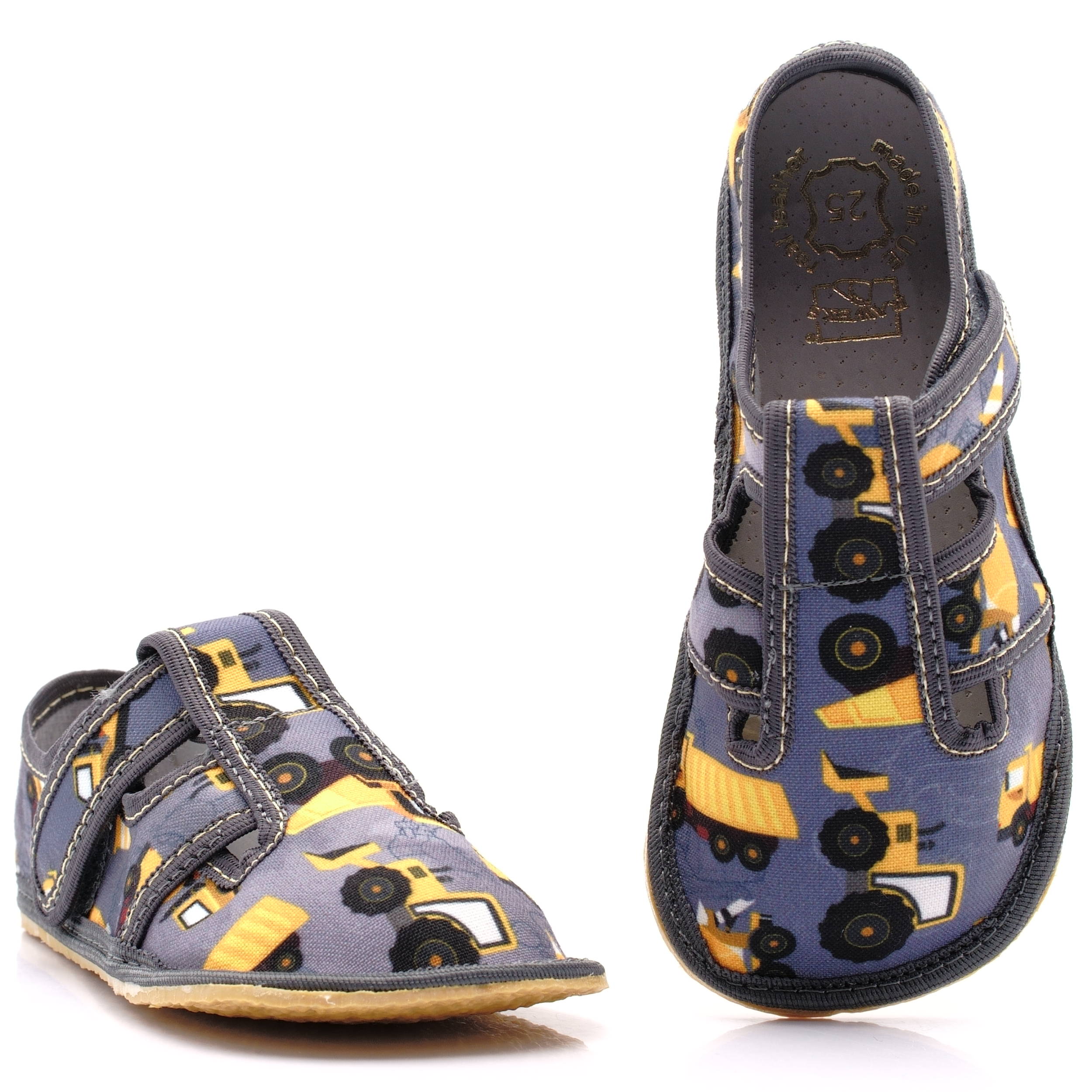Raweks BAREFOOT ідеально підходить як домашні тапочки для дитячого садка. Відрізняється високою якістю і комфортом використання. Виготовлена з бавовни, повітряних тканин і гнучкої підошви. Він також має шкіряну вставку, яка запобігає натиранню та поглинає неприємні запахи. Додатковою перевагою тапочок є вшита підошва, що робить їх більш міцними, зберігаючи високий комфорт використання.