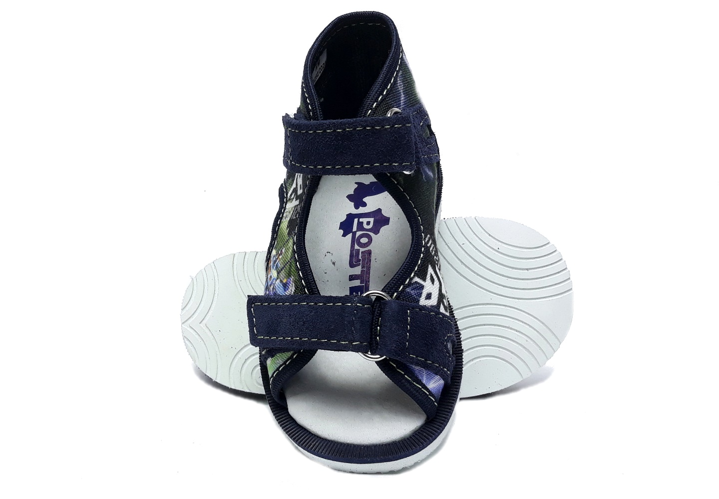 Профілактичні тапочки POSZCZ від REN BUT виготовлені з тканин найвищої якості, безпечних для дітей. У жорсткій п'яті використовується термопластичний матеріал BITERM, який не розм'якшується під час використання, завдяки чому ніжки дитини знаходяться в правильному положенні. Підошва проти ковзання має каблук Томаса.