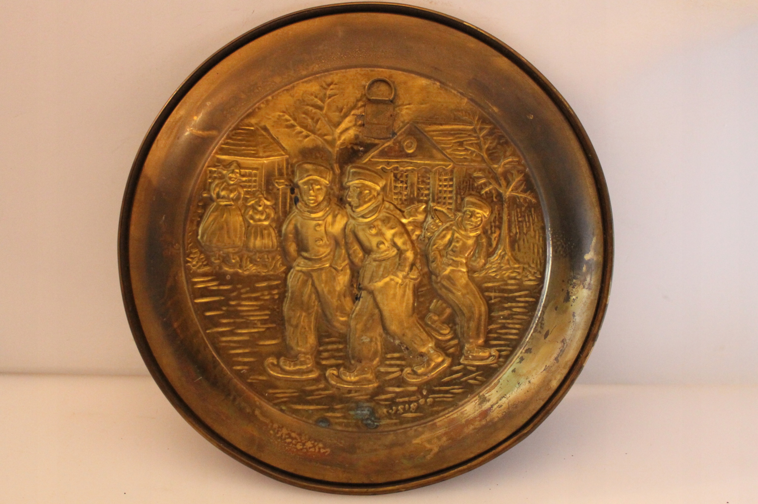 Об'єкт, зроблений з латуні. У тарілці є підвіска, щоб повісити на стіну.
