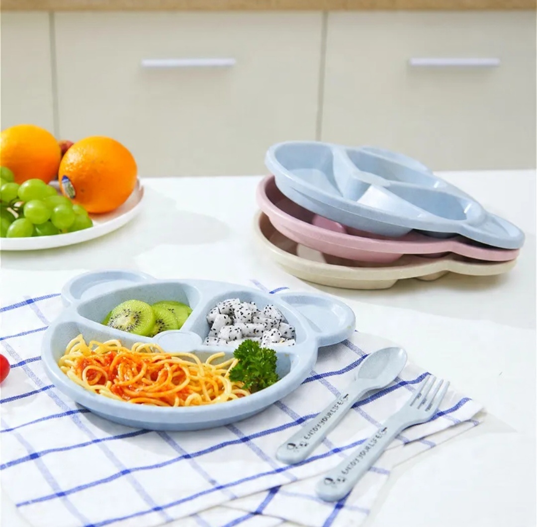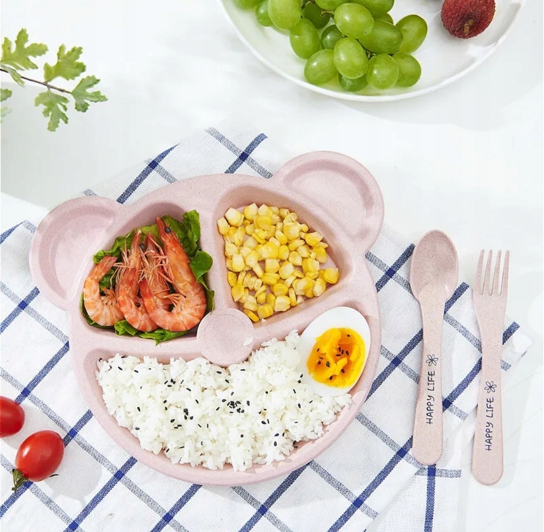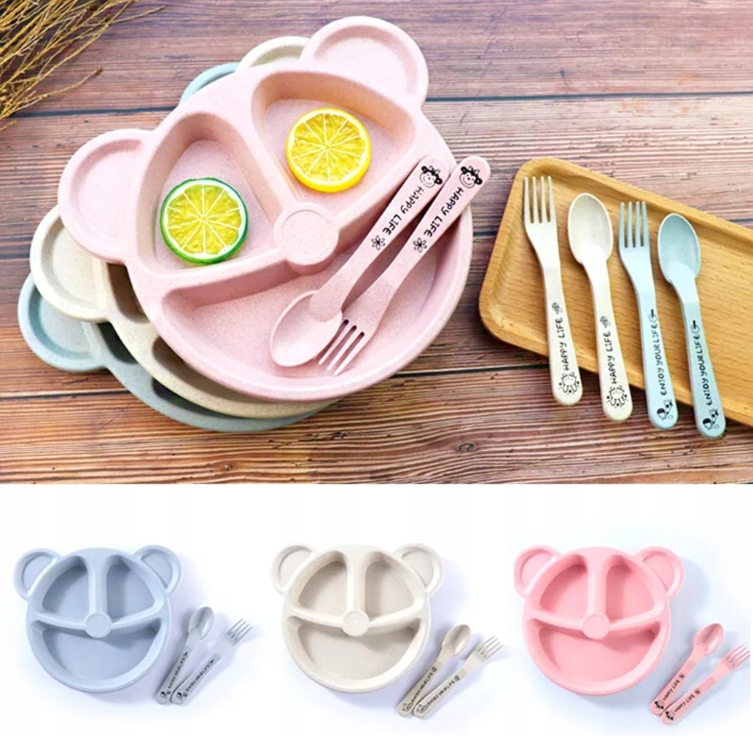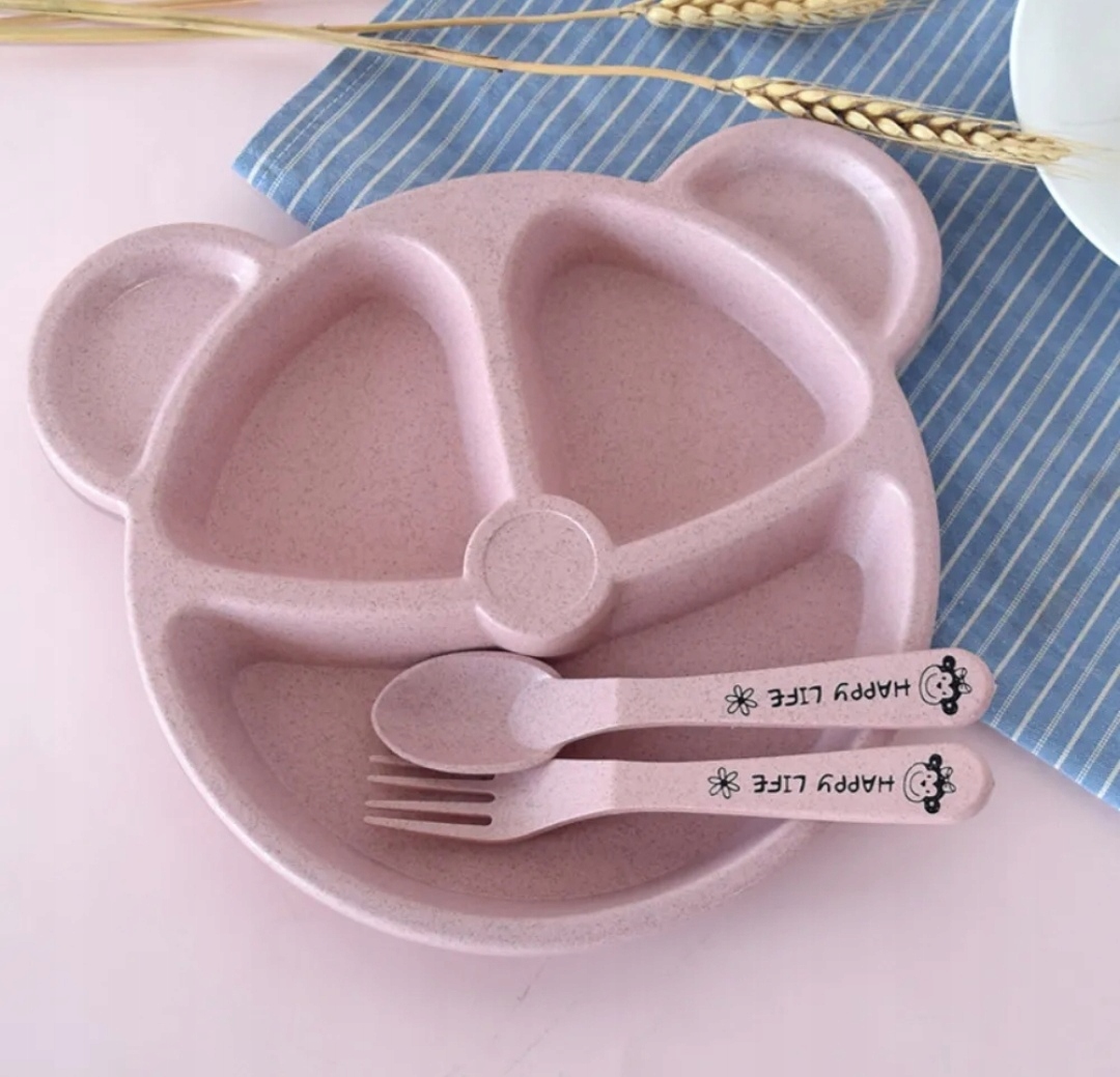 Тарілка для дітей плюс столові прилади з візерунком плюшевого ведмедика