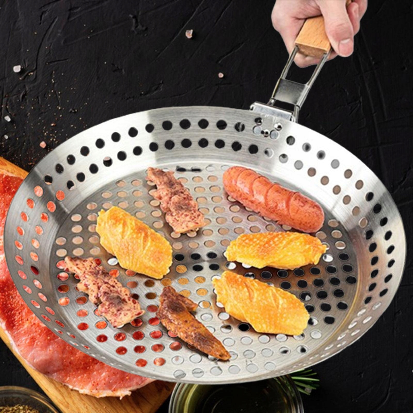 [Складна конструкція]: кругла сковорода для гриля з нержавіючої сталі складається та зручна для зберігання та перенесення під час кемпінгу чи пікніка.