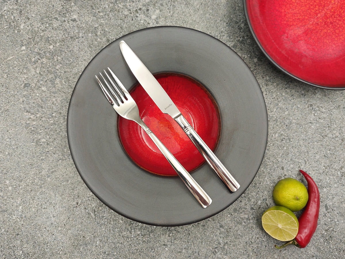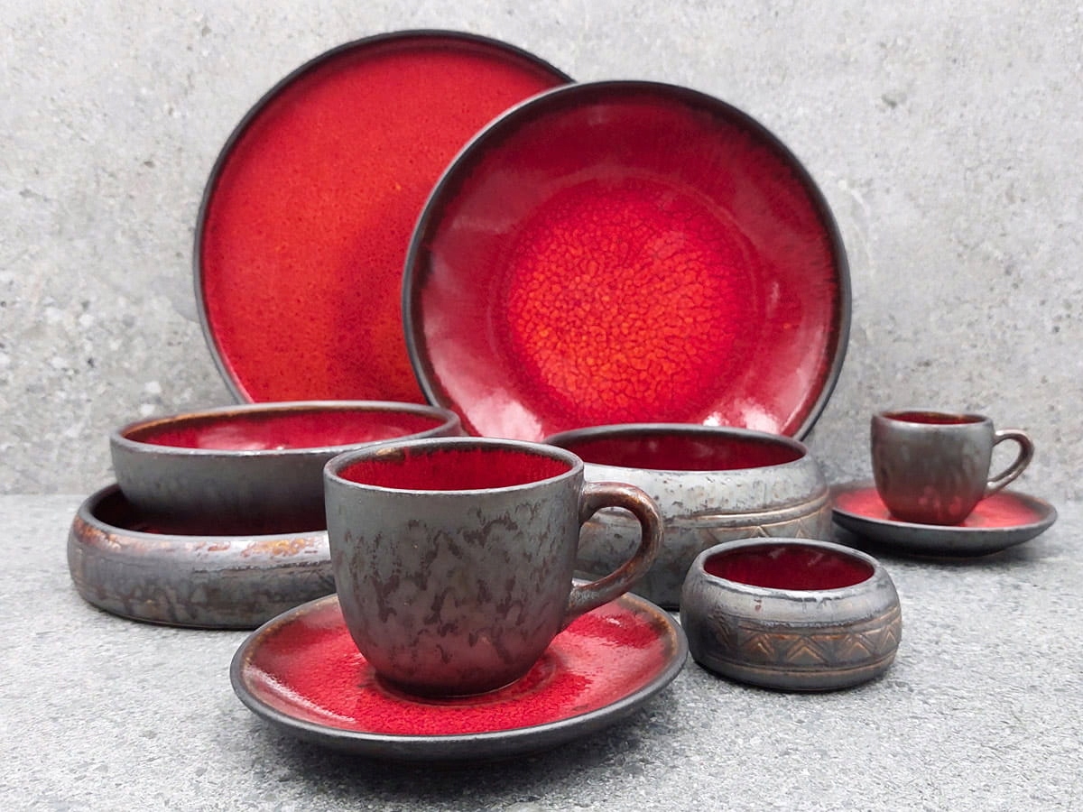 Серія Rubin Kera Ceramika — це лінія червоних посудин, прикрашених глазурованими тріщинами. Насичений червоний колір цікаво контрастує з коричневим покриттям. Тарілка ідеально підходить для гастрономії: ресторанів, готелів, готелів чи піцерій.