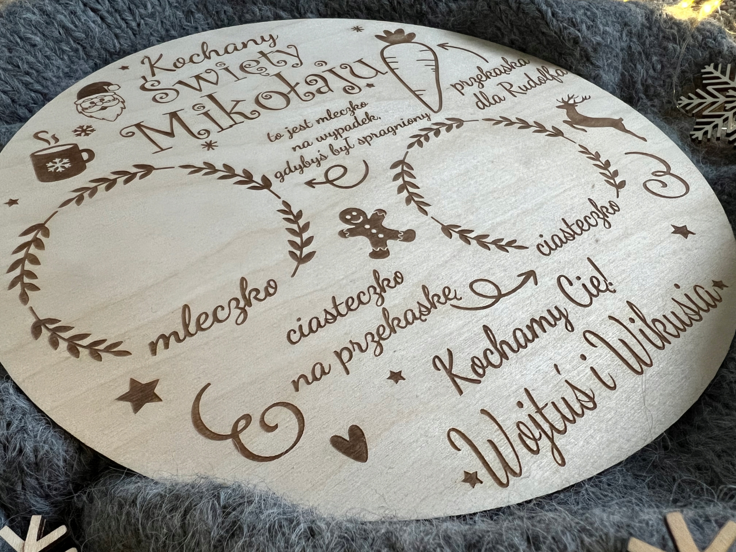Дерев'яна тарілка для св. Дід Мороз під ялинкою з ім'ям для вашої дитини!