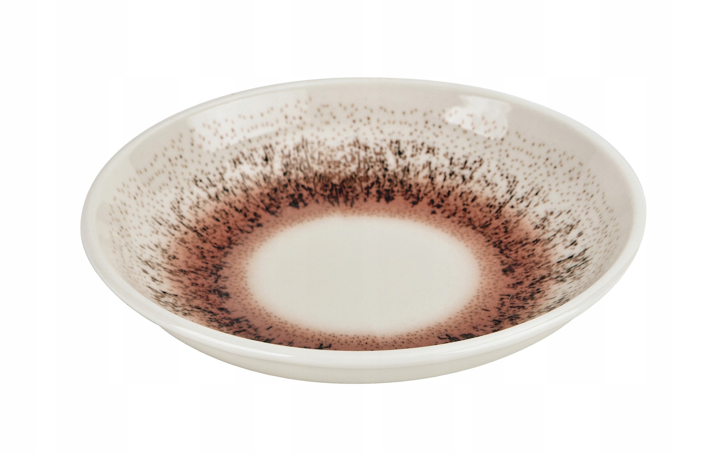 У середині страви є вражаючий декор, що нагадує глазур вибух крапель у відтінках червоного та теракотового , які створюють декоративний, концентричний малюнок.