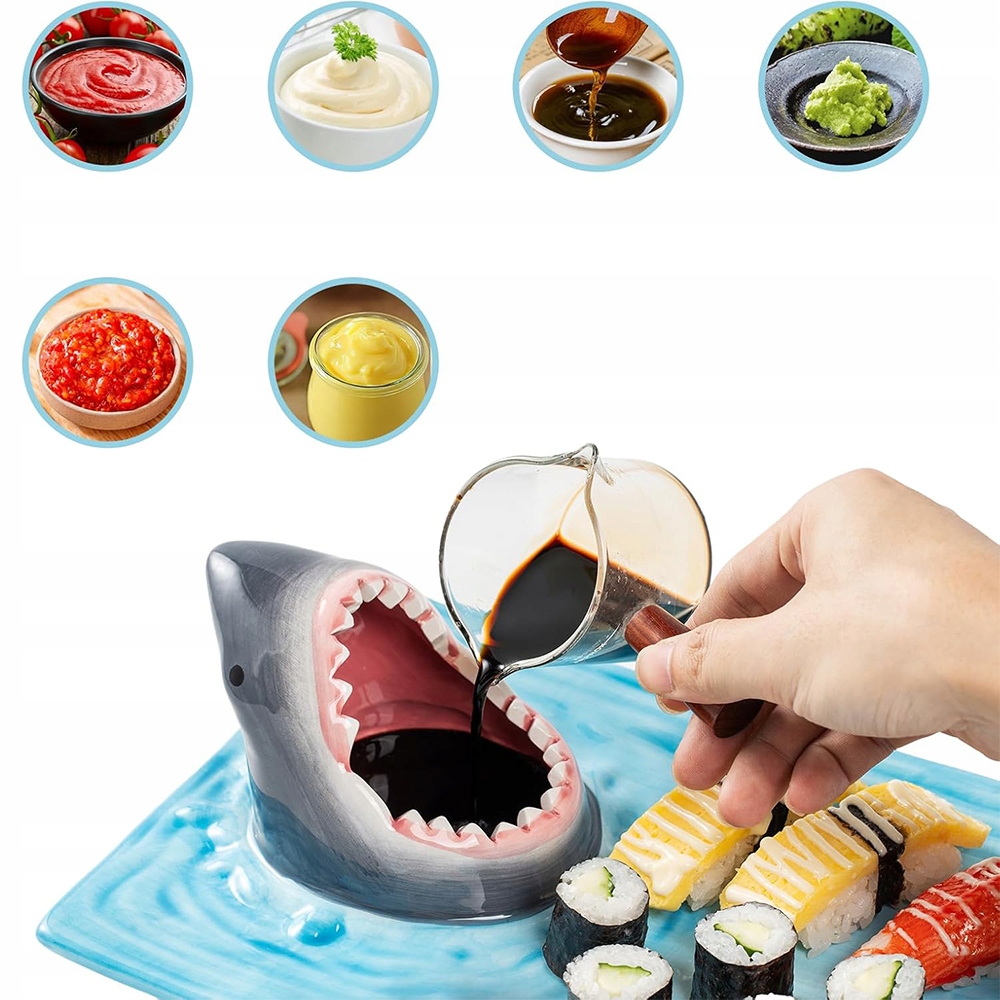 - Ця голодна акула вміщує соуси, і в ній достатньо місця для всіх ваших закусок із морепродуктів.