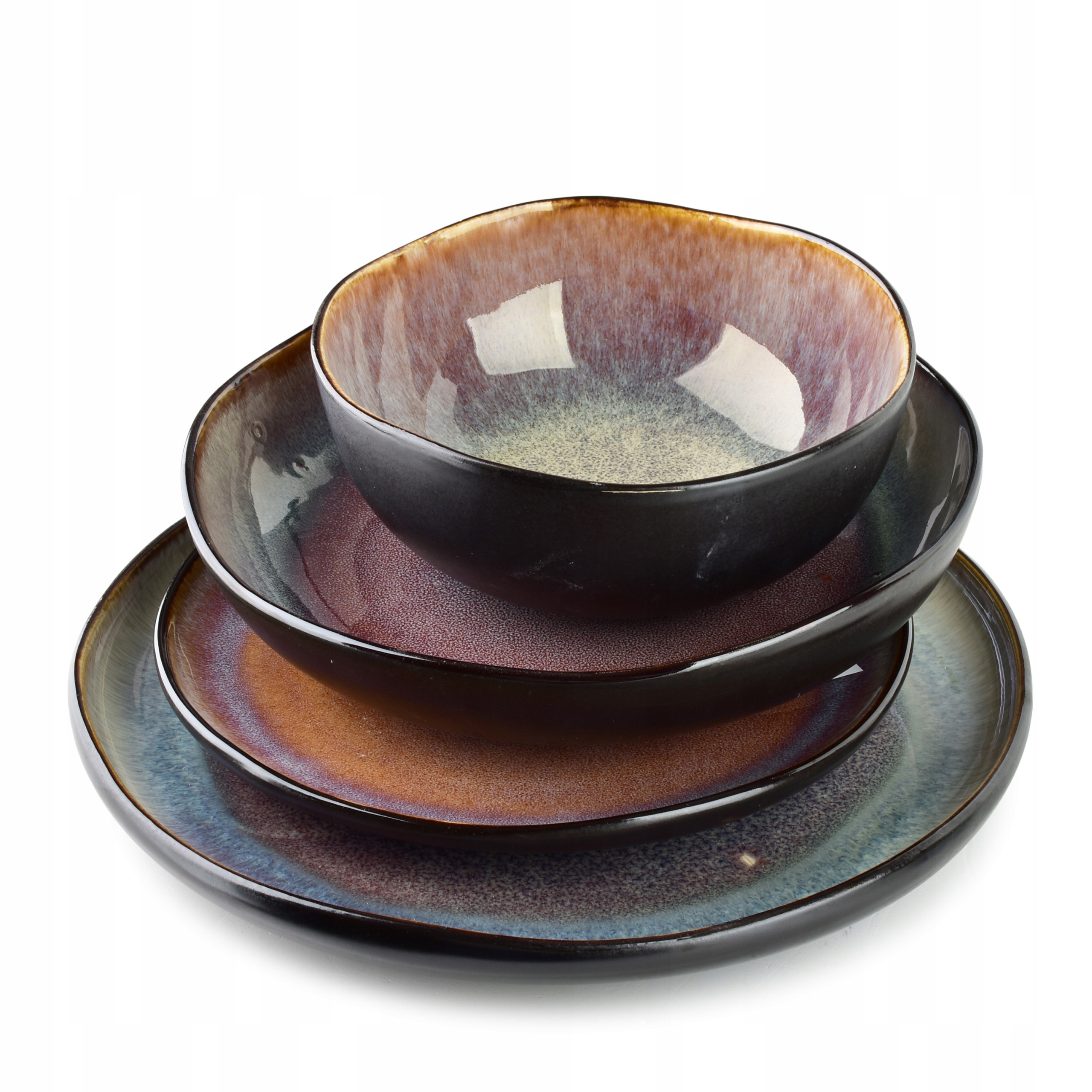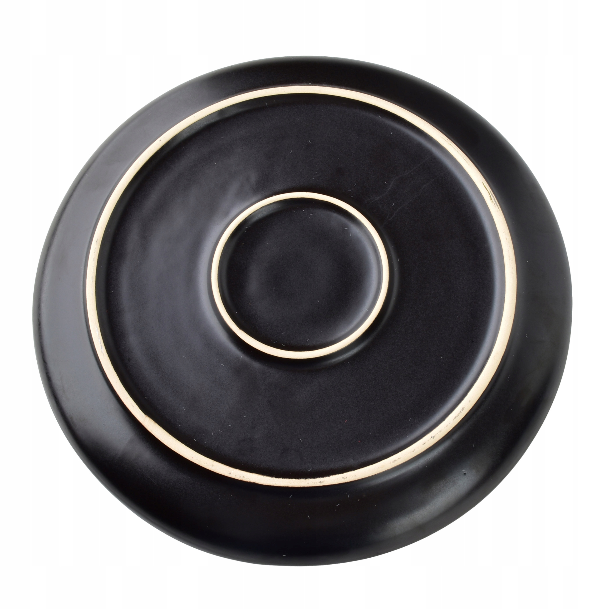 ✔️ Її вирізняє контрастний дизайн: чорний зовні та гармонійне поєднання кольорів (фіолетовий, коричневий, бежевий) всередині. Це унікальне поєднання надає йому характеру декоративного елемента столу. Широка поверхня (27x27 см) забезпечує красиву презентацію, а висока якість кераміки гарантує довговічність.