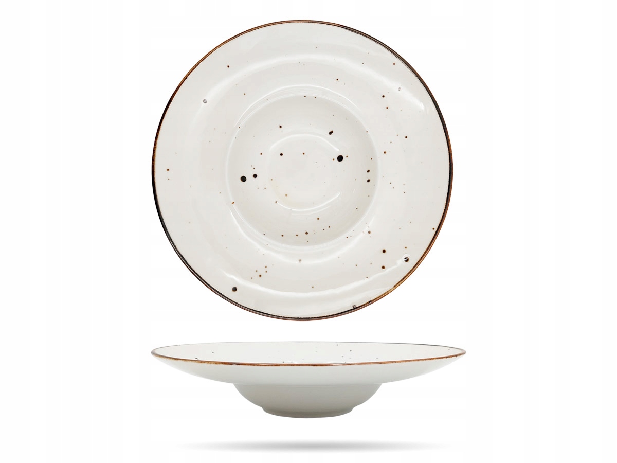 Глибока тарілка з широким бортиком. Тарілка для пасти прикрашена темними крапчастими візерунками. Ця тарілка ідеально підходить як для домашнього, так і для професійного кейтерінгу. Серія крапчастих Cottage включає тарілки, тарілки, салатниці, кухлі та чашки різних відтінків.