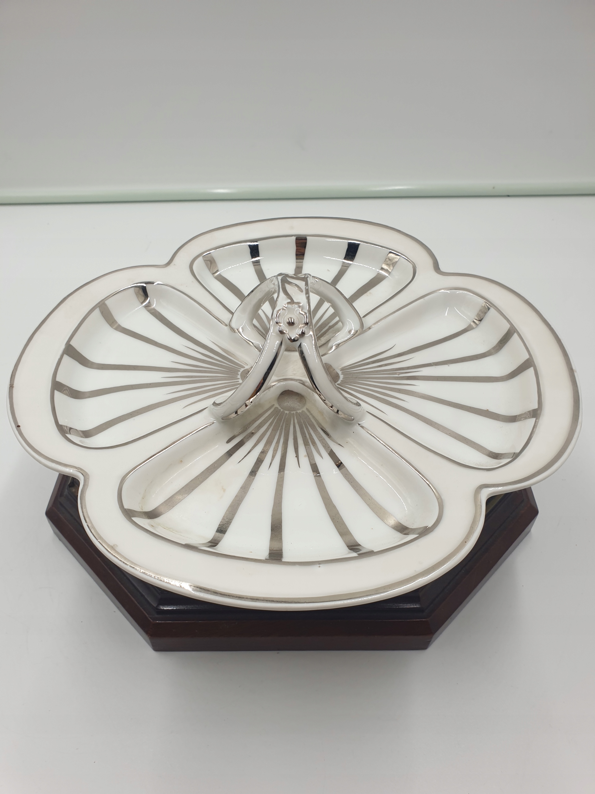Тарілка та піднос з посрібленої порцеляни з Франції