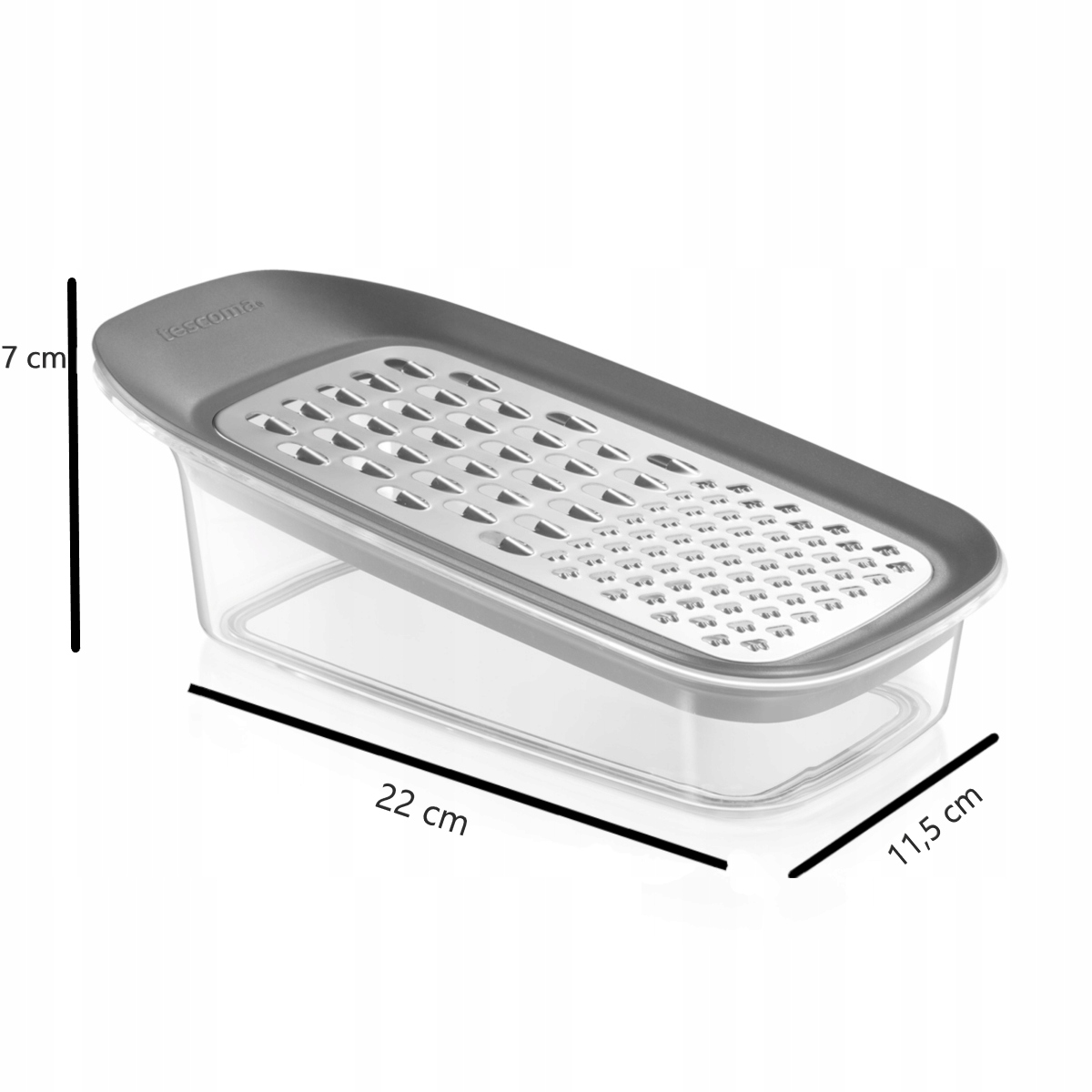Тертка виготовлена з контейнера та леза з високоякісної нержавіючої сталі рама виготовлена з міцного пластику з протиковзким покриттям знизу.