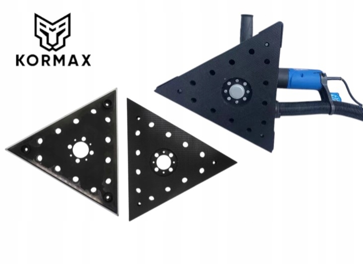 тверда, міцна пластина Kormax, оснащена липучкою для швидкої заміни абразивних паперів та вентиляційних отворів, що підтримують пилові розрядки під час роботи.