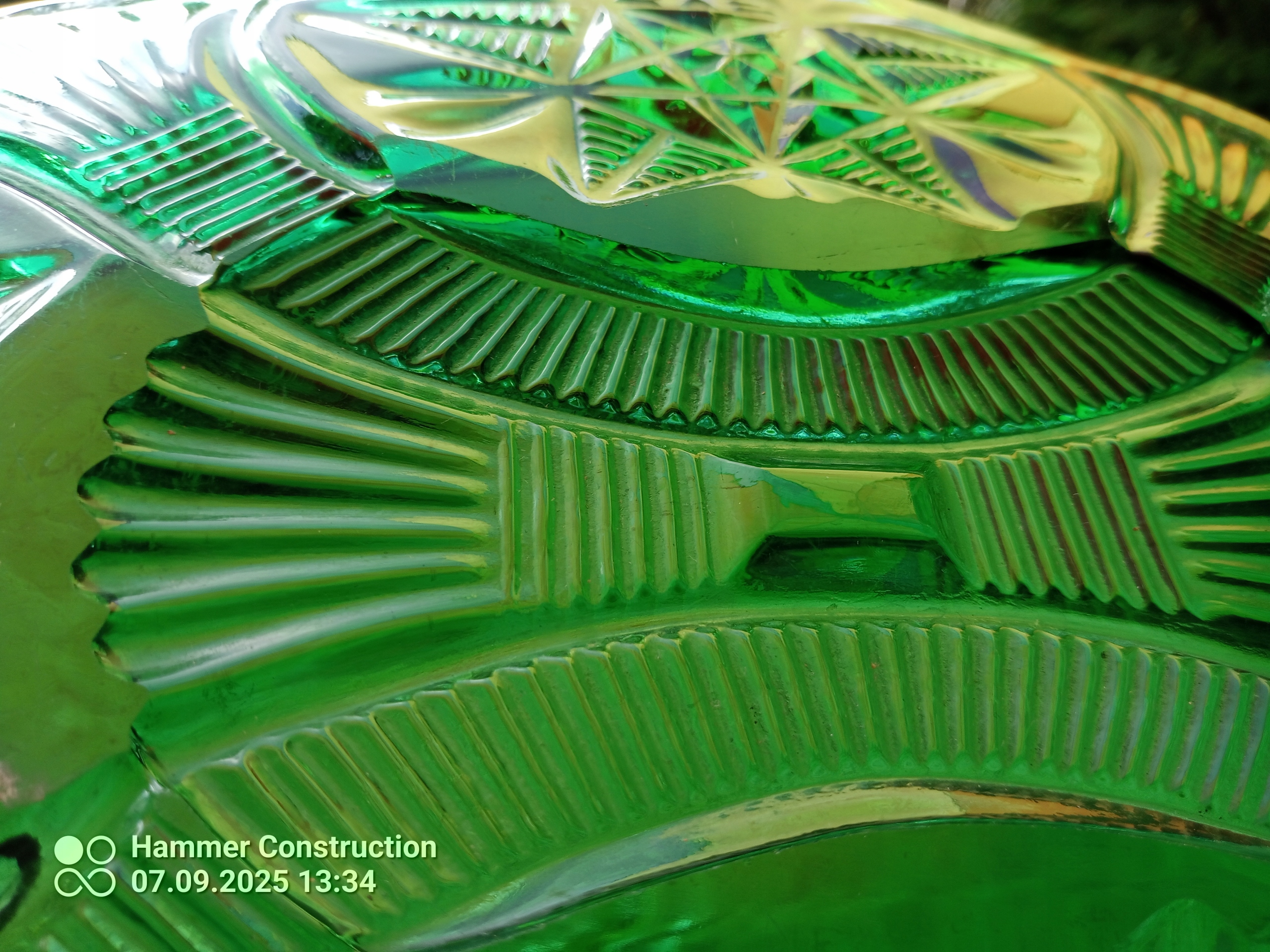 4 23 х 16 см. Виготовлений з пресованого, товстого стінного скла, кольору, кольору в зеленій масі - смарагдовий відтінок.