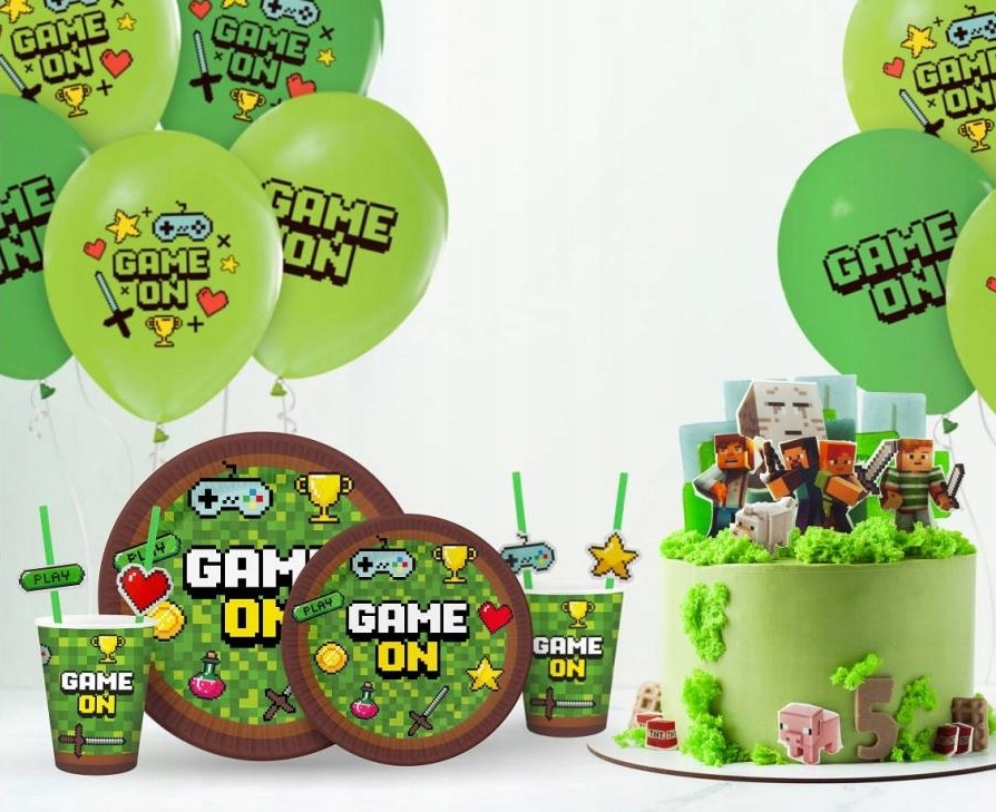 Організуйте справжню ігрову вечірку з унікальним набором, натхненним світом ретро-відеоігор! Піксельна графіка, знакові символи джойстиків, сердечок, корон і мечів змусять кожного гравця, маленького чи великого, відчути, що він грає в свою улюблену гру. Ідеальний вибір для днів народжень, зустрічей з друзями та будь-якої вечірки з атмосферою «ГРИ»!
