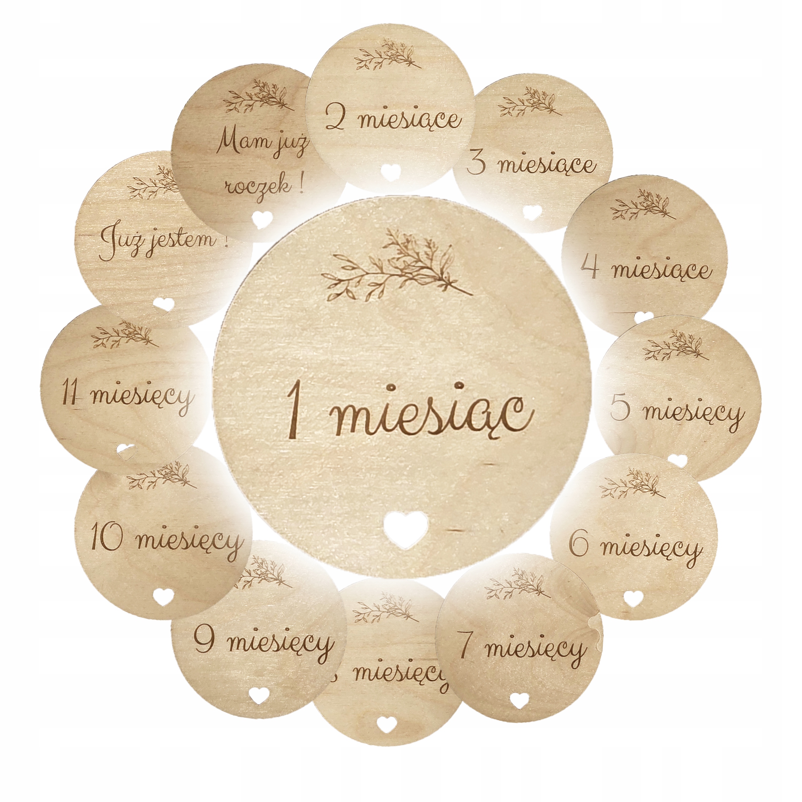 Захопіть унікальні моменти з першого року вашої дитини з нашим набором дерев’яних тарілок! Набір містить 13 ретельно зроблених тарілок, кожен з них означає один місяць життя вашої дитини - від 1 до 12. Ідеально для фотографування та документування цінного часу, який проходить так швидко.
