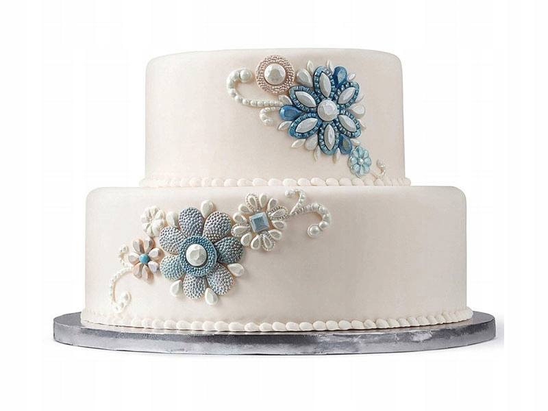 Оригінальний, чарівний візерунок нагадує декорації англійської садиби, а металевий колір основи асоціюється з багатством і святковістю. Також сріблястий колір надзвичайно універсальний, завдяки чому основа підходить як до будь-якої випічки, так і до будь-якого посуду.