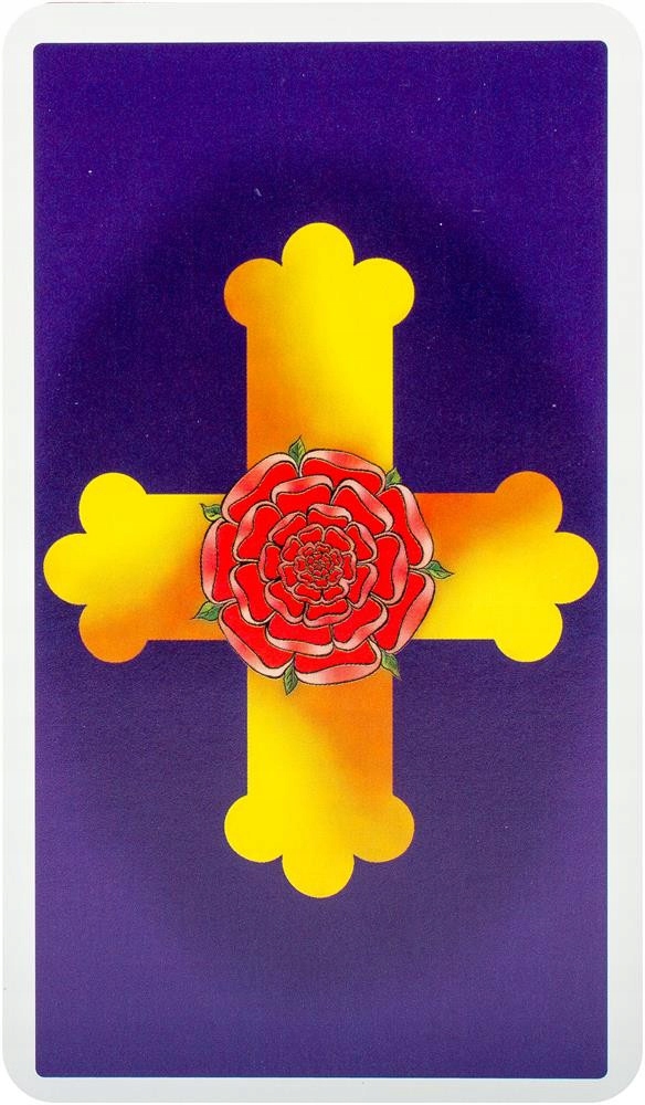 Зворотна сторона картки синього кольору прикрашена красивою трояндою, яка вказує на членство A.E. Вейт і Памела Колман Сміт у Братстві Трояндового Хреста.