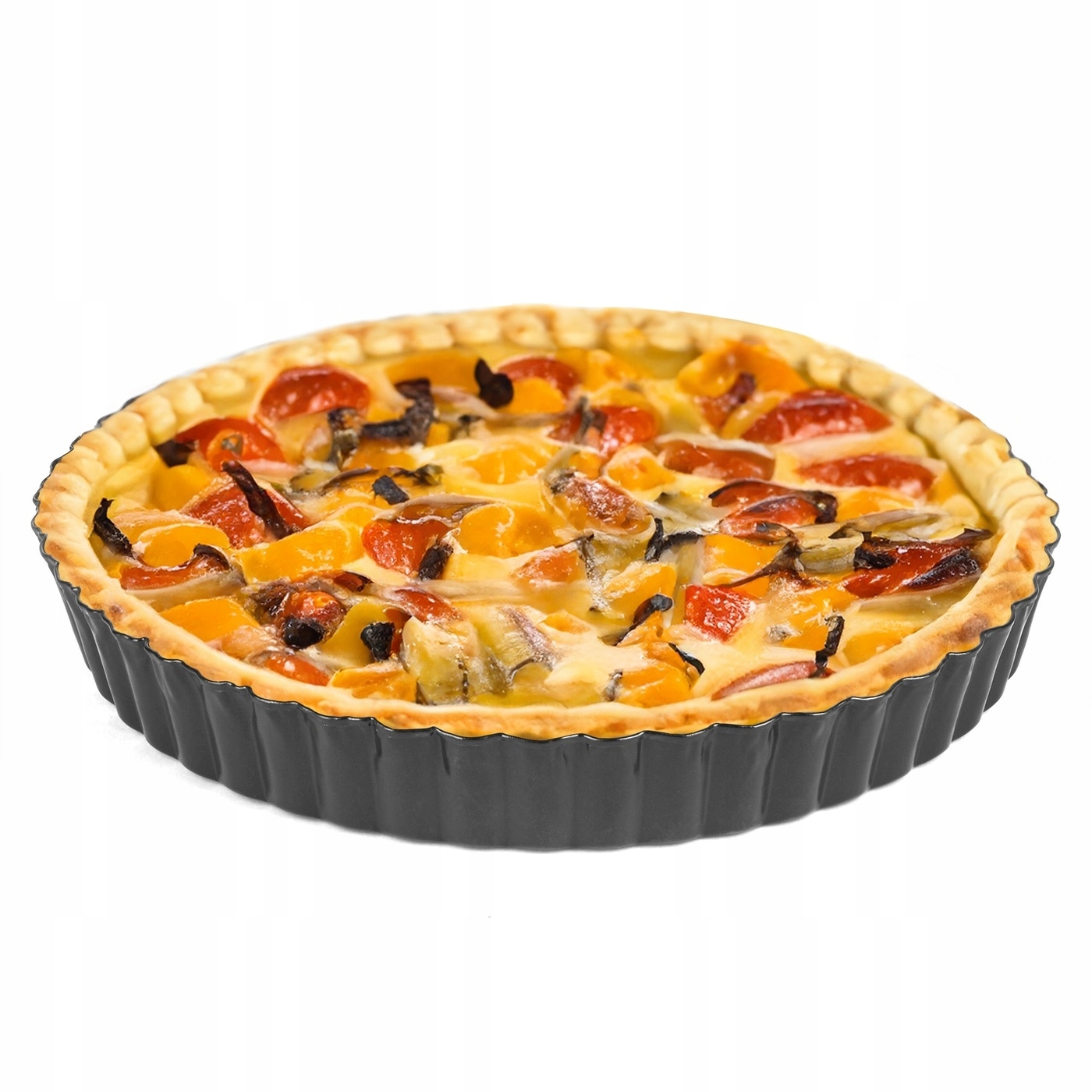 Тартна форма зі знімним дном 25 см виготовлена з вуглецевої сталі. Ви запікаєте в ньому класичні пироги з гофрованим краєм. Золота клатка, що наносить покриття, безпроблемно і швидко видалив торти. Знімне дно дозволяє негайно давати хлібобулочні вироби на столі, не перекладаючи на тарілку.