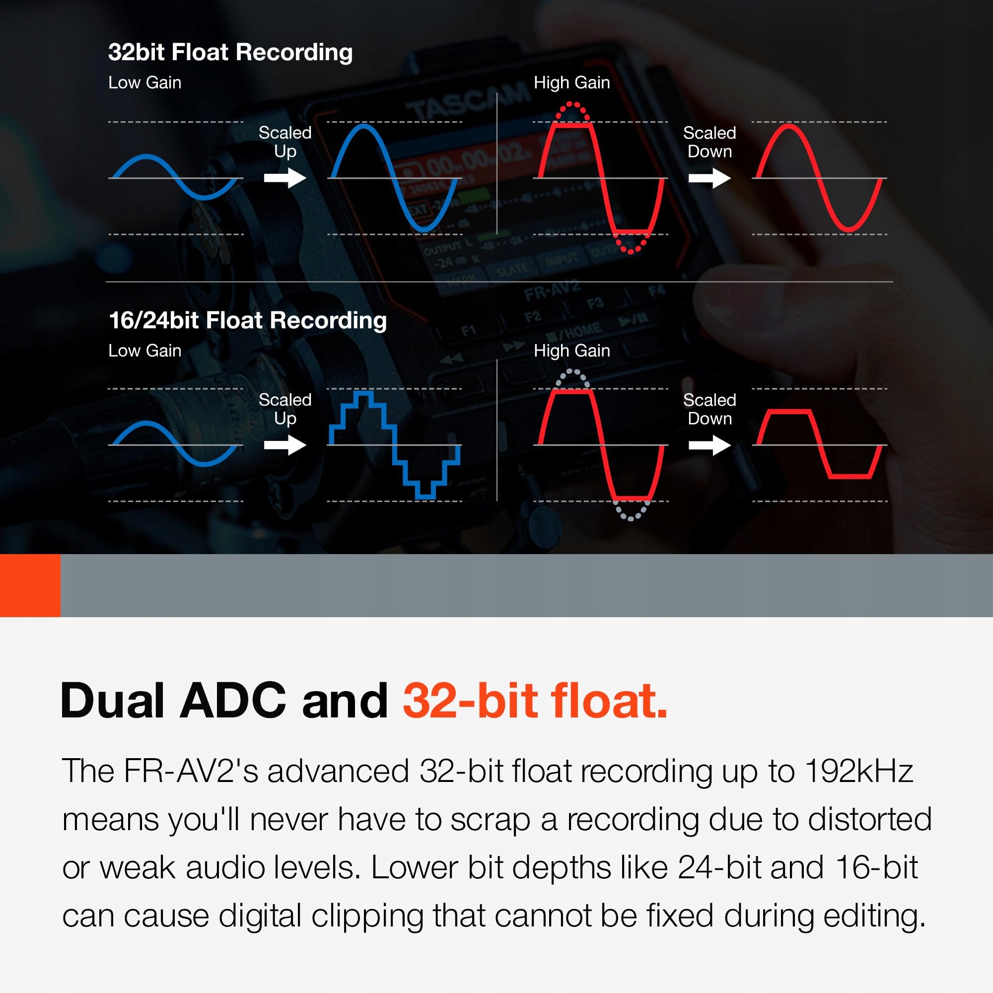 Таскам FR-AV2-компакт 32-бітний рекордер польового поля та генератор часового коду зі змішувачем