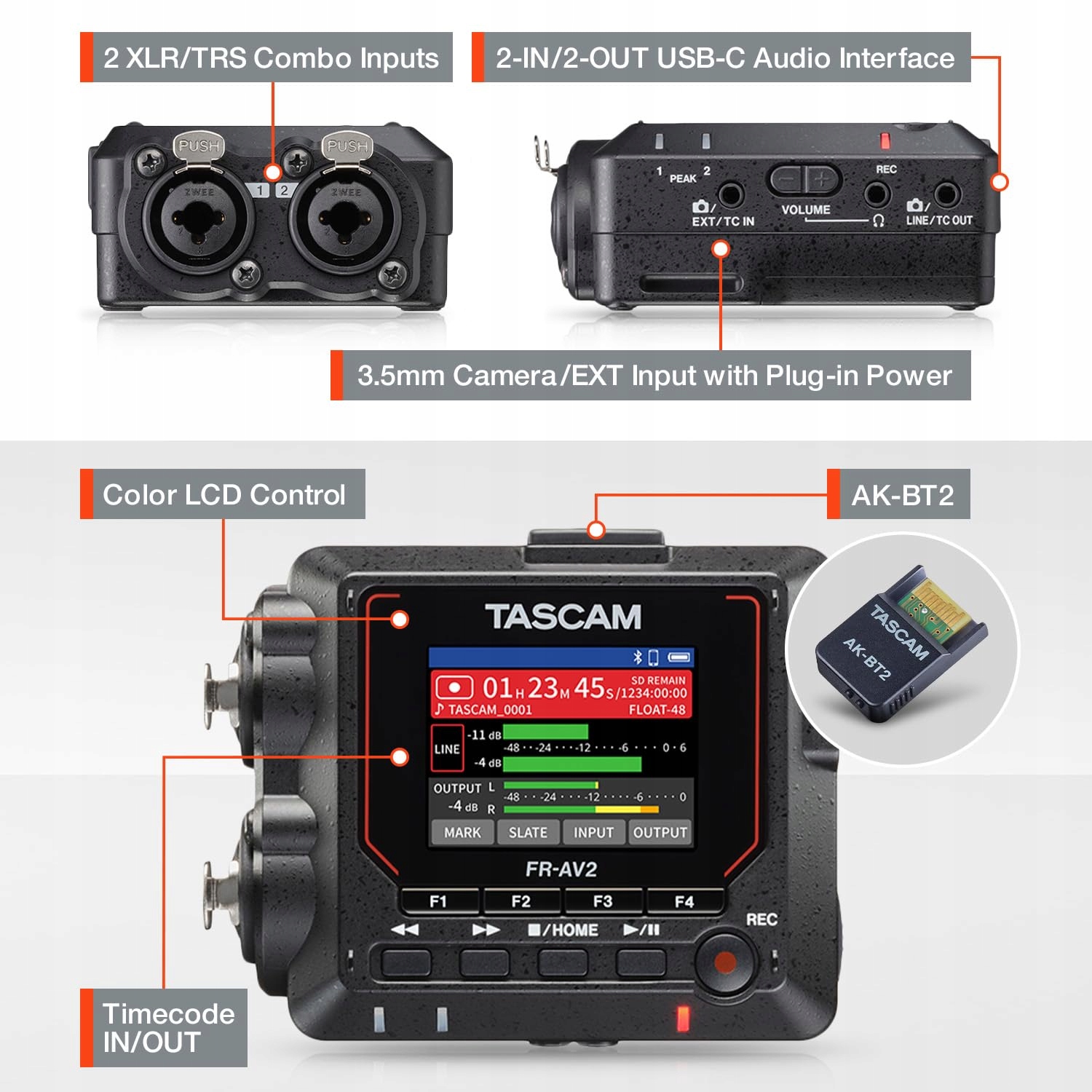 Таскам FR-AV2-компакт 32-бітний генератор диктофона та часового коду Timecode