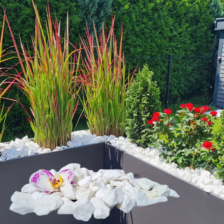 Тасоська крупа підійде як декоративна засипка для алей і клумб. Білий колір гармонійно поєднується з зеленню і надає характер садової композиції. Також він чудово контрастує з темними фасадами та гранітними парканами. Завдяки своїй структурі пісок дуже ефективний.