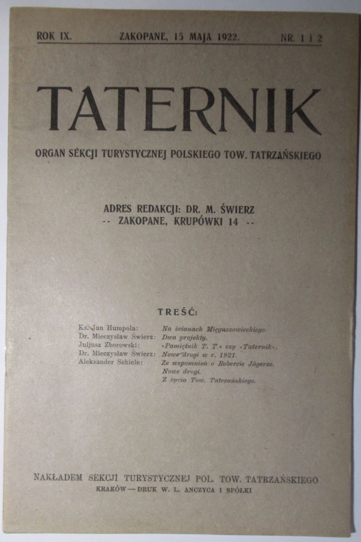 Татернік, зошит 1-2, з 15 травня 1922 року.