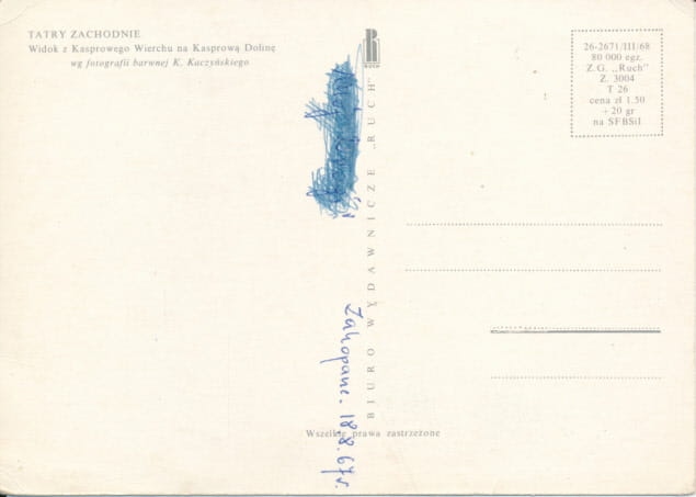 Просматривая «Вид на Татры из Каспровы - 032272», вы можете быть уверены, что данный товар из каталога «Малопольский» будет доставлен из Польши и проверен на целостность. В цене товара, указанной на сайте, учтена доставка из Польши. Внимание!!! Товары для Евросоюза, согласно законодательству стран Евросоюза, могут отличаться упаковкой или наполнением.