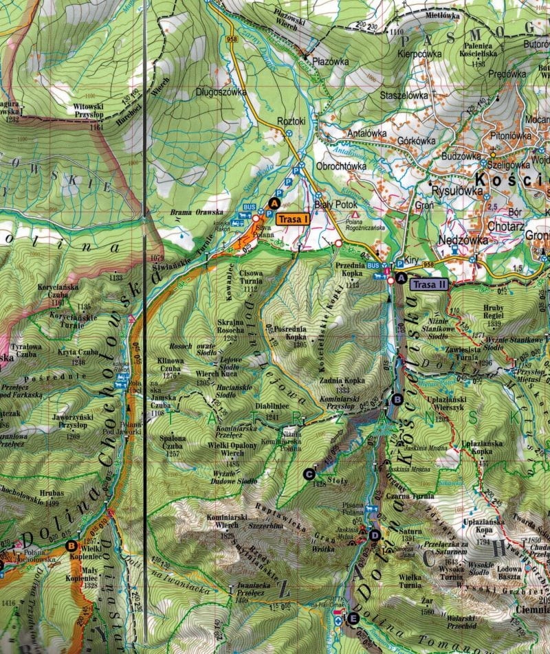 - карти та плани в масштабах, корисних для туристів (дорожня карта регіону 1:250 000, туристична карта з гірськими стежками 1:55 000, план Закопаного 1:15 000),