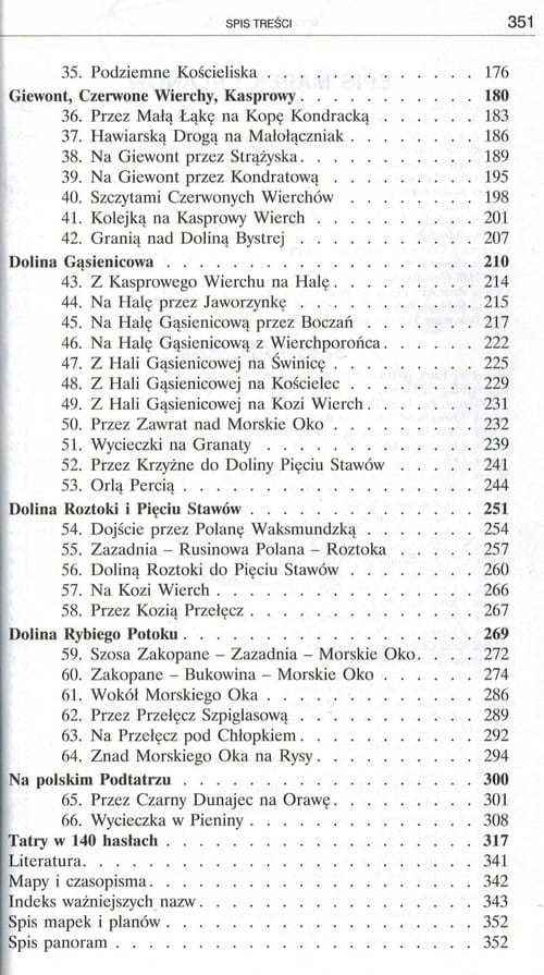 У виданні детально описано всі стежки в польських Татрах, вміщено пропозиції щодо прогулянок околицями Закопаного та кількох подорожей до гір Підтатри (66 маршрутів у усього).