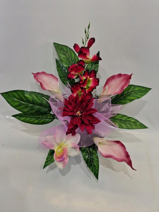 Прикраса з вставкою вази зі штучних квітів у горщику, наповненому бетоном.