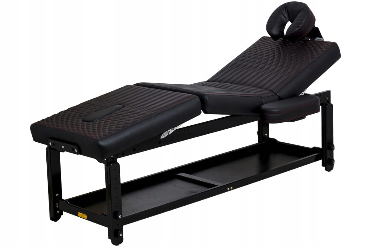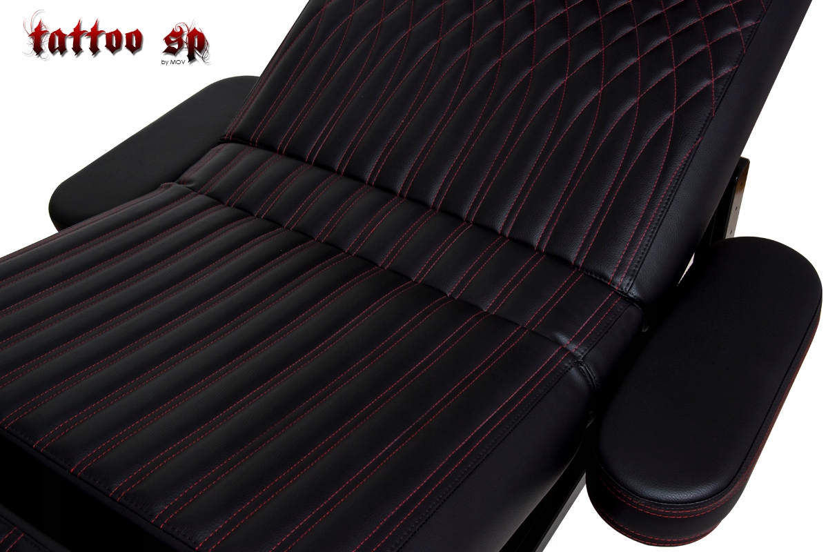 Таблиця Tattoo SP — це таблиця з унікальними значеннями корисності. Ажурна дерев'яна конструкція і напівглянцева чорна обробка роблять цей предмет меблів прикрасою будь-якої вітальні. Стіл був розроблений спеціально для салонів тату і пірсингу, де, крім технічних цінностей, також важливий зовнішній вигляд і характер меблів. Чотирьохсекційне розташування робочої поверхні дозволяє розмістити клієнта в положенні лежачи, підняти гомілку і п'яту, а також напівсидячи з легким доступом до рук, передпліч, грудей і стоп. Оббивка Comfort Plus забезпечує найвищий рівень комфорту під час дуже тривалих занять. Оздоблення столу з візерунком Dark Red Arc ідеально вписується в простір салону татуювань і пірсингу, надаючи йому унікальний, витончений характер.