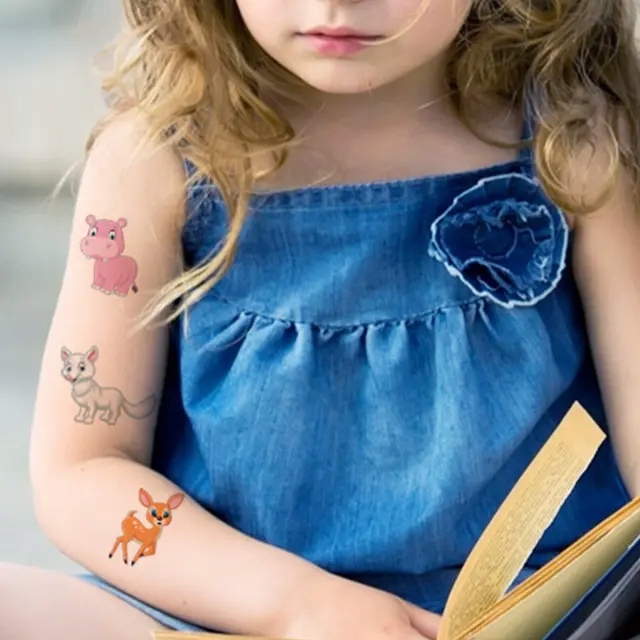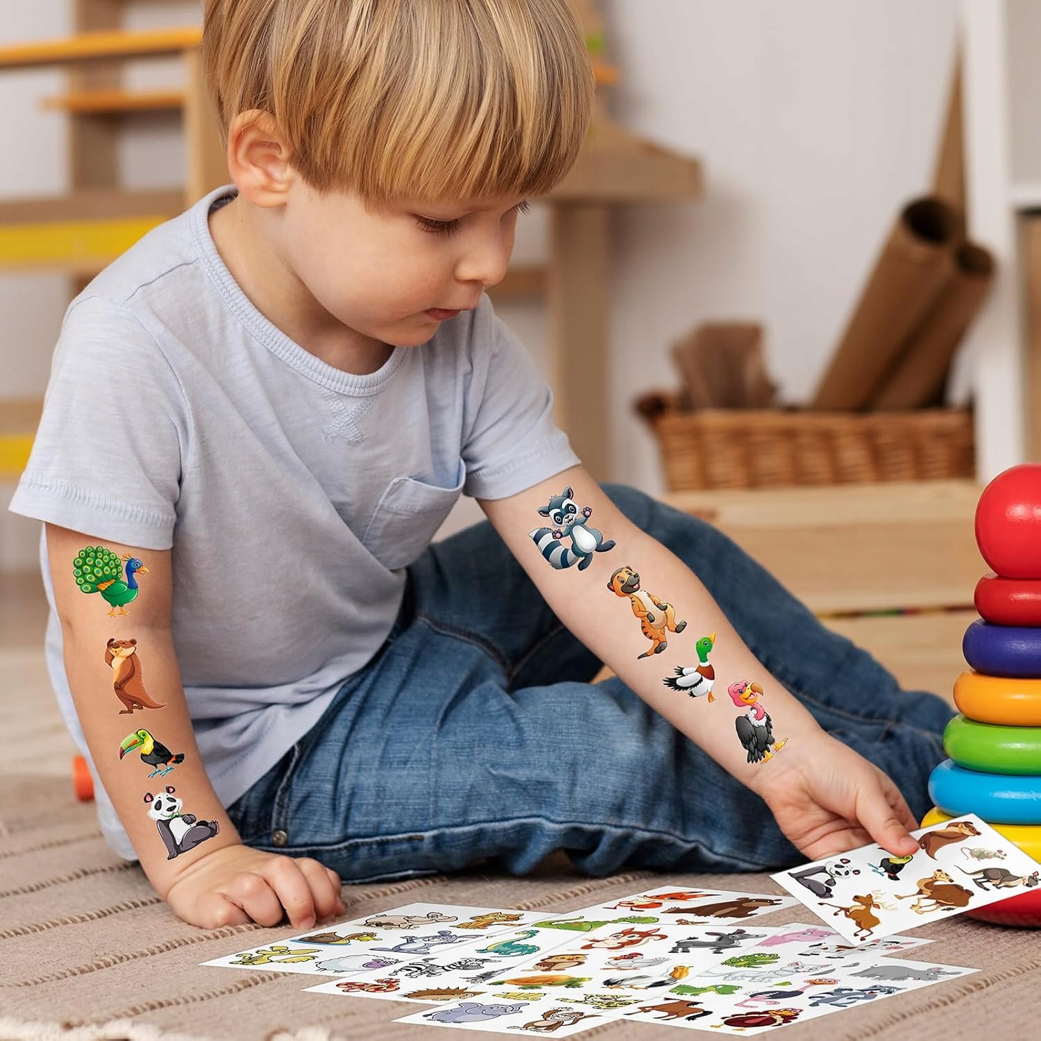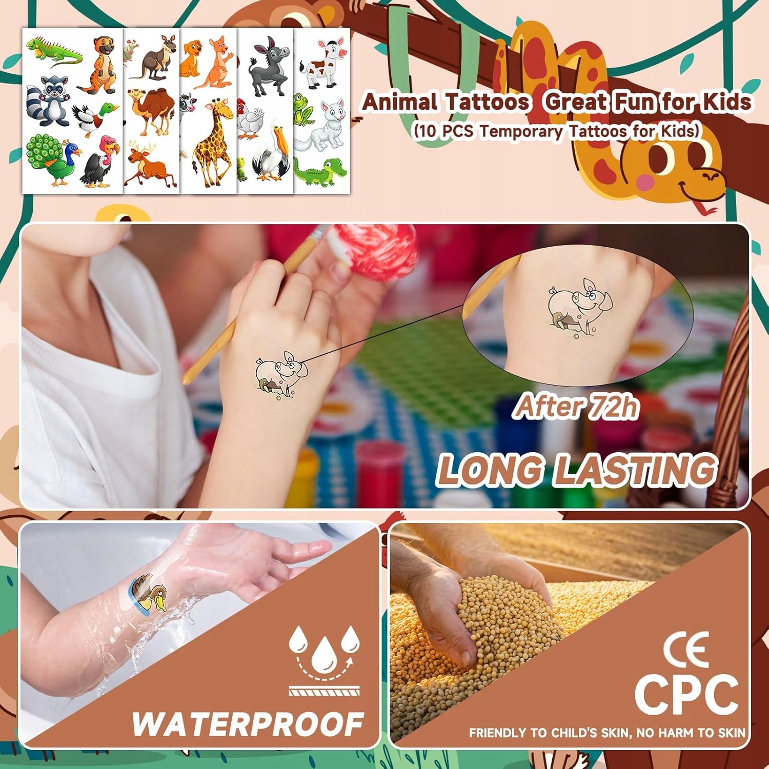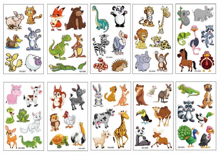 ТАТУ ДЛЯ ДІТЕЙ 10 АРКУШІВ 12х7,6 СМ ТВАРИНИ НАВЧАЛЬНІ НАЛІЙКИ
