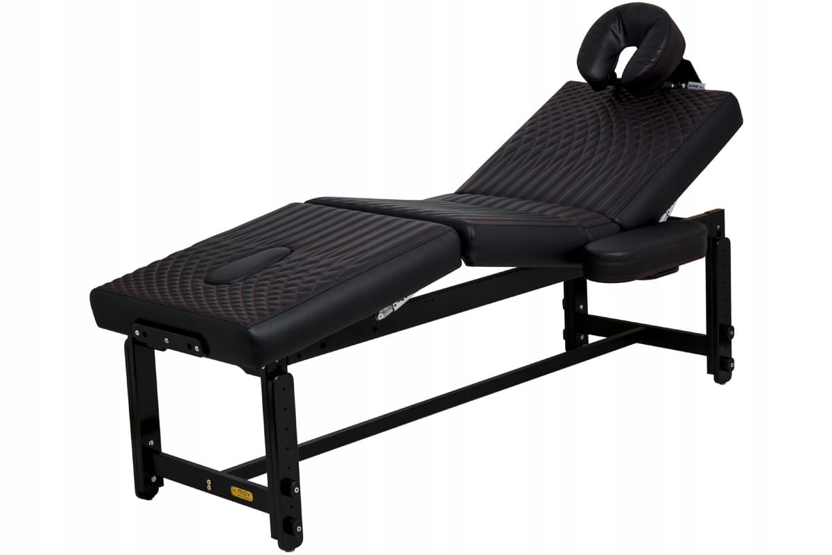 Чотирисекційне розташування робочої поверхні дозволяє розмістити клієнта в положенні лежачи, підняти гомілку, п’яту тощо, також положення напівсидячи з легким доступом до рук, передпліч, грудей і стоп. Оббивка Comfort Plus забезпечує найвищий рівень комфорту під час дуже тривалих занять. Оздоблення столу у вигляді темно-червоної дуги ідеально вписується в простір салону татуювань і пірсингу, надаючи йому унікальний, витончений характер.