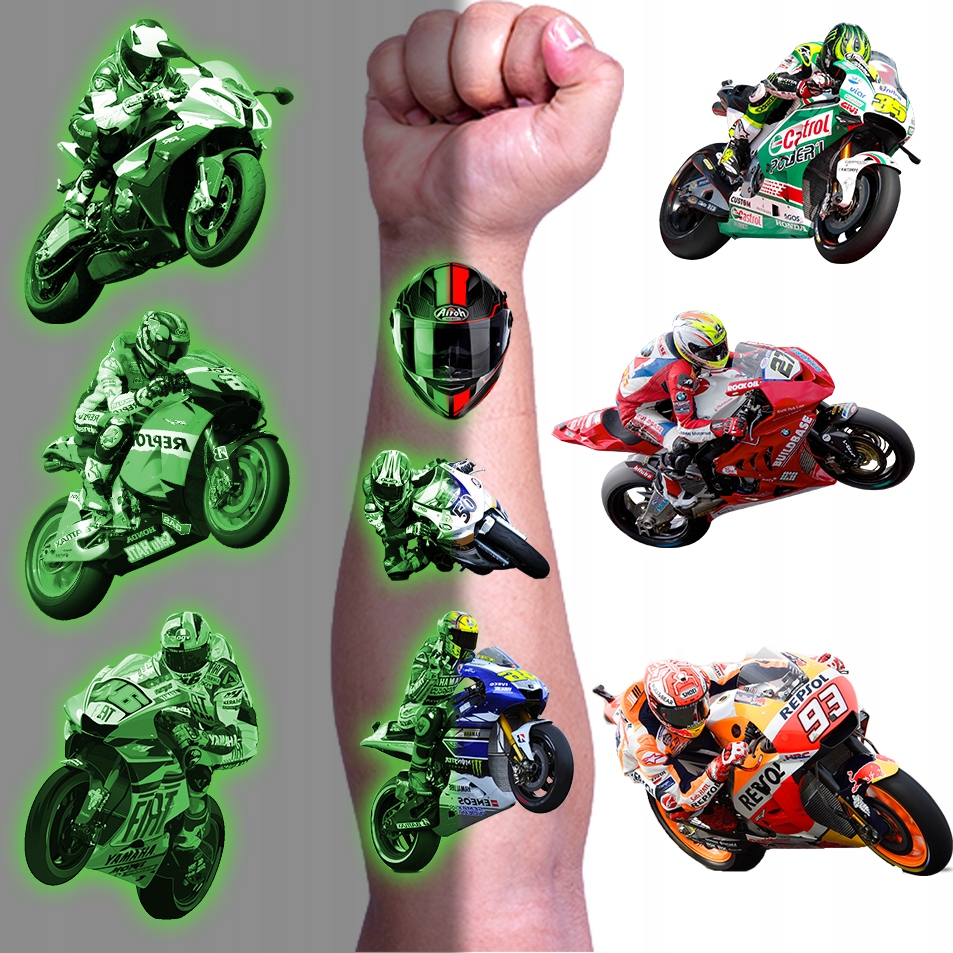 ТАТУЮВАННЯ, ЩО СВІТЯТЬСЯ В ТЕМРЯНІ, МОТОЦИКЛИ, ДЛЯ ДІТЕЙ.