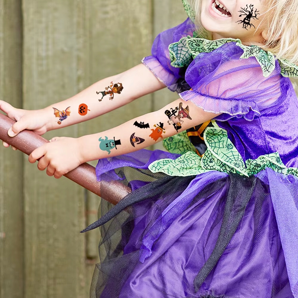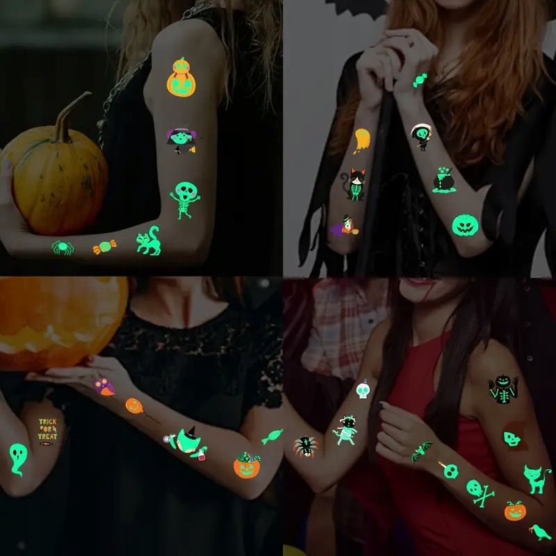 Татуювання чудово підходять для прикраси тіла під час Хеллоуїна, а також можуть бути використані як невеликі подарунки для гостей. Здивуйте своїх друзів оригінальними татуюваннями, які світяться після настання темряви та створюють моторошну атмосферу!