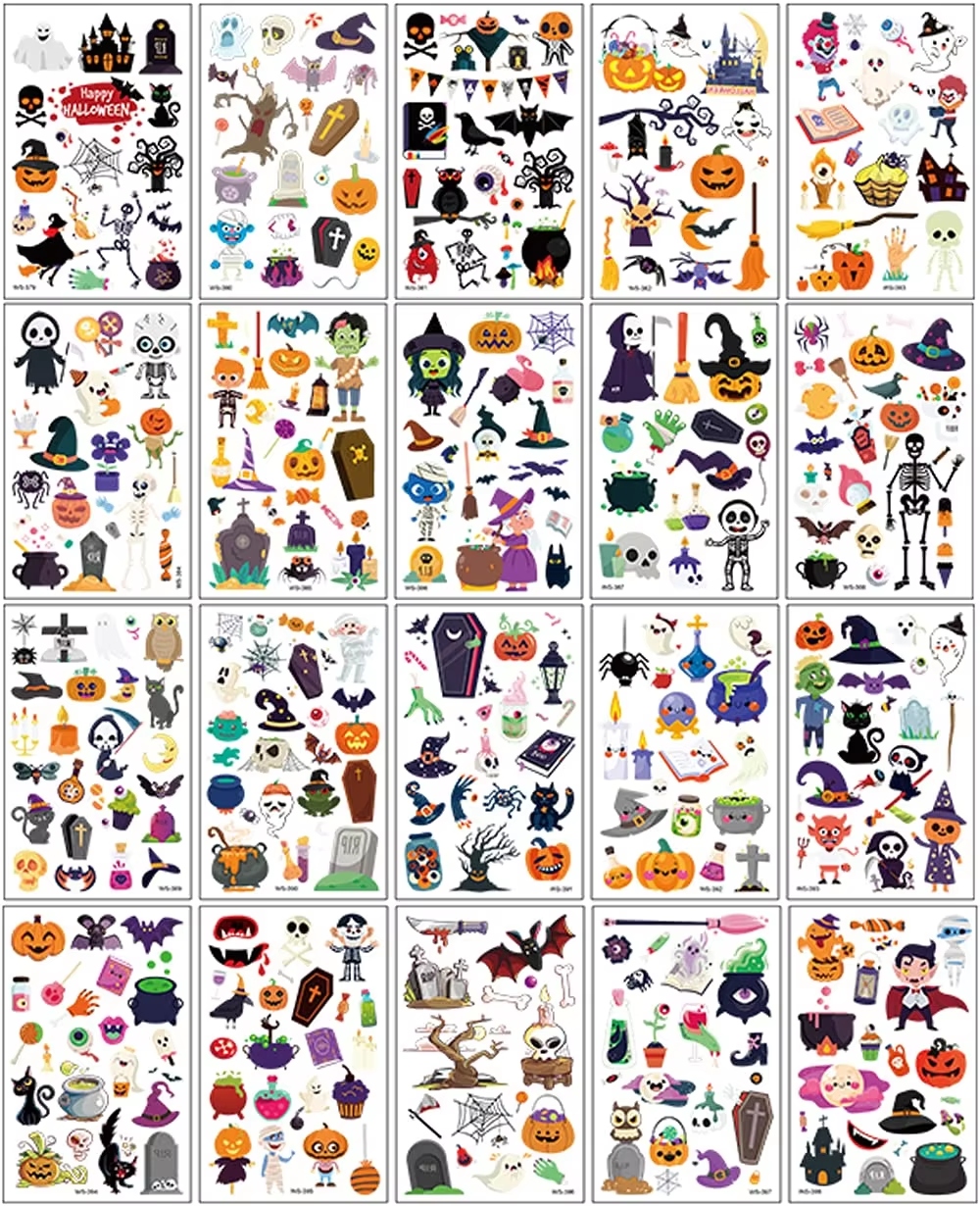 ТАТУЮВАННЯ, ЩО ЗМИВАЮТЬСЯ, ХЕЛОВІН, СЯЄТЬСЯ МОНСТРИ, ПРИВИДИ, 20 АРКУШІВ ДЛЯ ДІТЕЙ