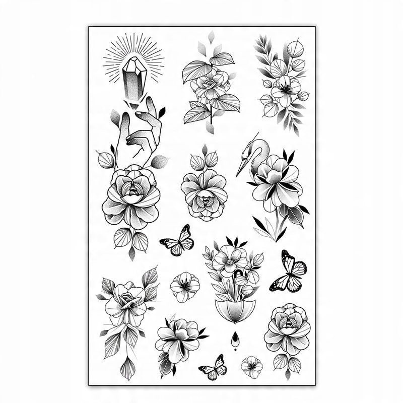 НАБІР ЖІНОЧИХ ТАТУЮВАНЬ 12 ШТАТІВ КВІТИ МЕТЕЛИКИ ТРОЯНДИ ПІР'Я ТА ІНШЕ