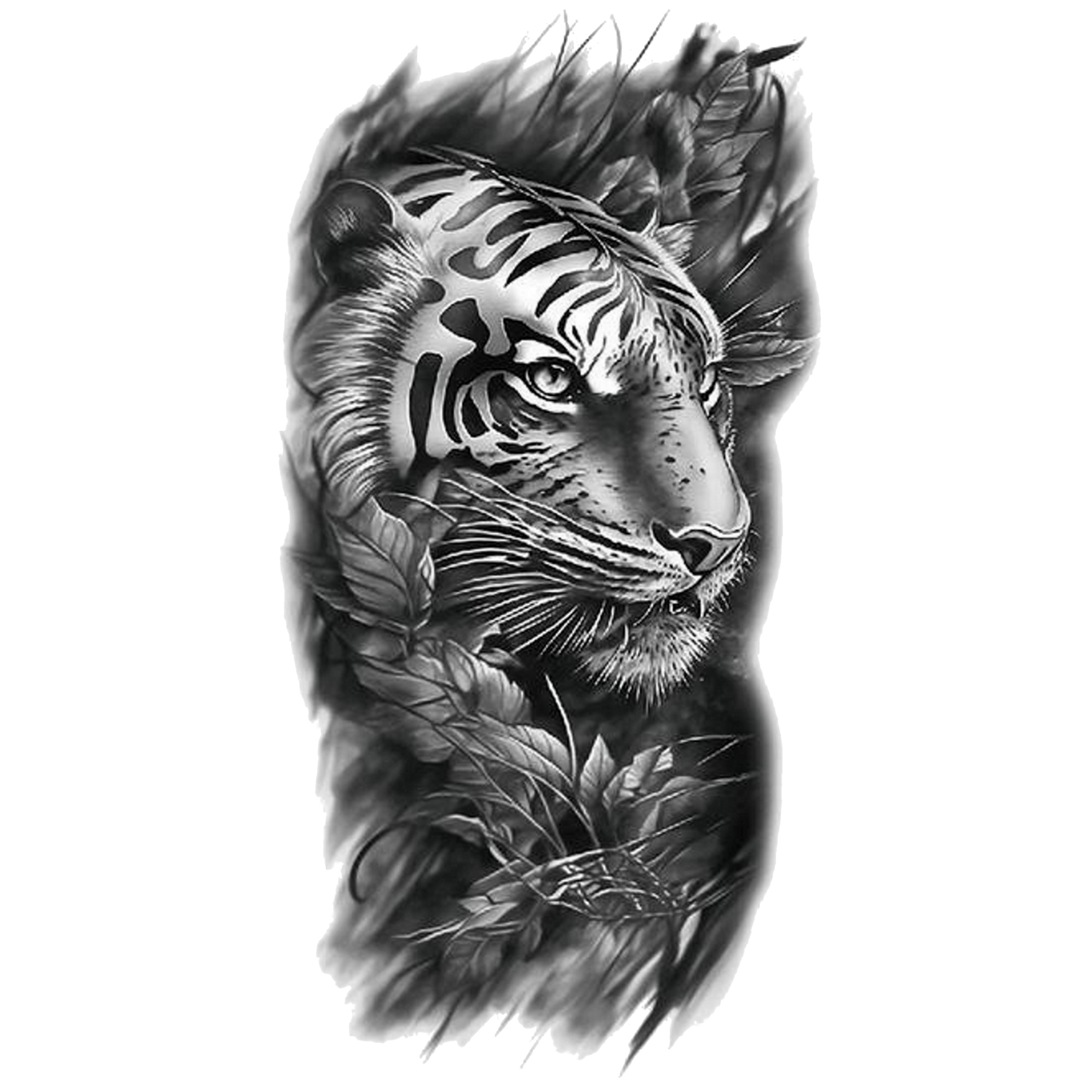 ТАТУЮВАННЯ ТИГРА В ОТОЧЕННІ ЛИСТЯ, МОЖНА ЗМИВАТИСЯ, ТИМЧАСОВА ВОДА