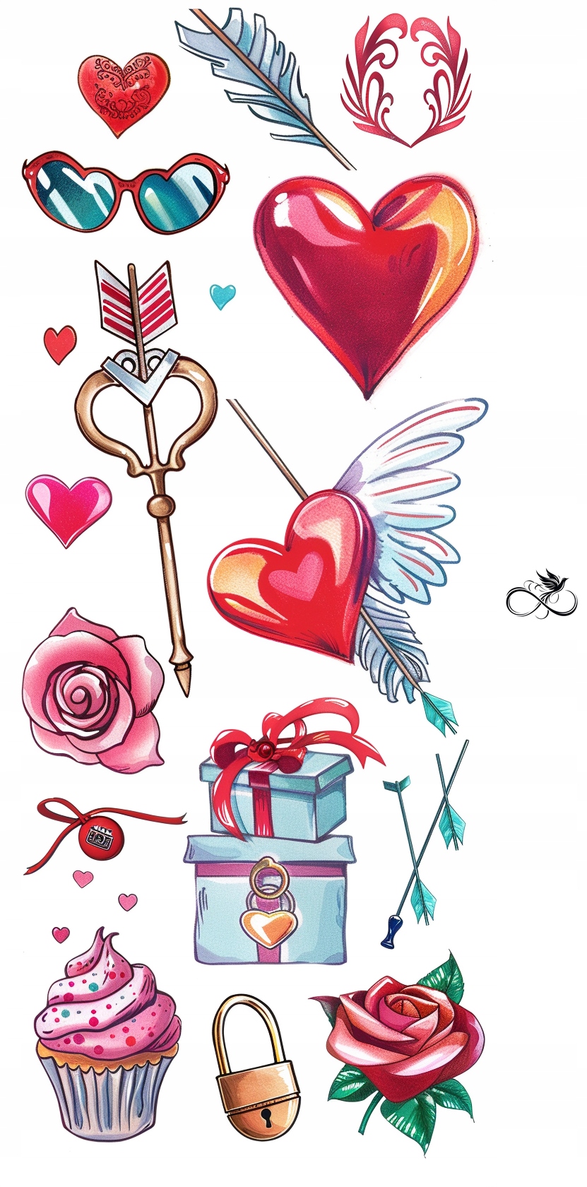 Татуювання Валентина для дорослих дітей тимчасове серце серця