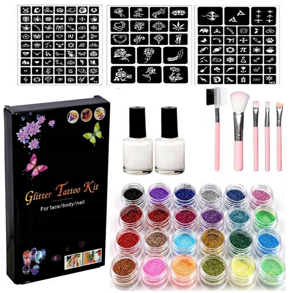 Набір містить цілих 24 різні кольори блискіток, які дозволять вам створювати незліченні комбінації привабливих візерунків - від делікатних, романтичних татуювань до виразних вечірніх прикрас для шкіри. Палітра включає як яскраві, інтенсивні кольори, такі як фуксія, бірюза та золото, так і більш приглушені відтінки срібла, пастелі та темно-синій. Завдяки такій великій різноманітності ви можете нескінченно експериментувати та підбирати кольори відповідно до свого настрою, стилю чи події.