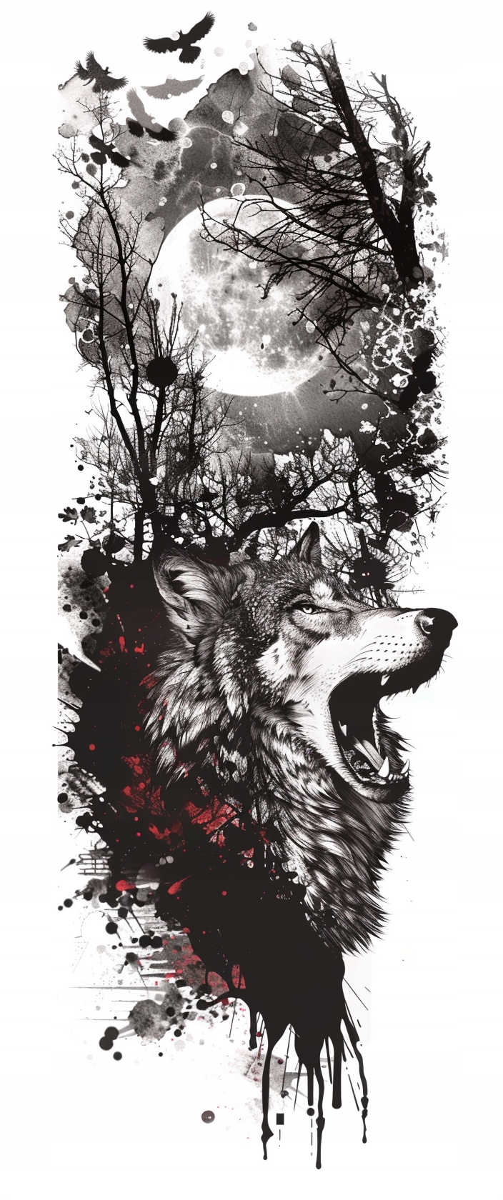 Татуювання з лісовим ландшафтом Wolf Wolf - довгий xxl водонепроникний