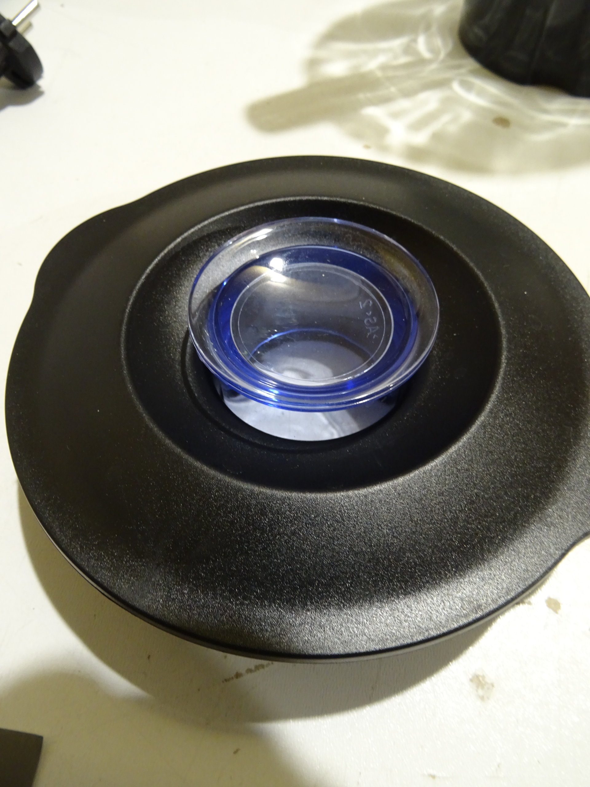 - Великий скляний глечик з отвором для наливання та наповнення. З закритим вимірювальним заходом потужністю 30 мл на покритті