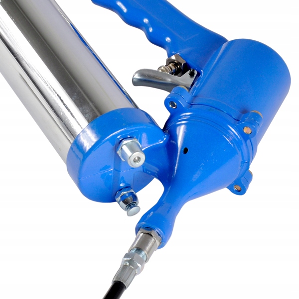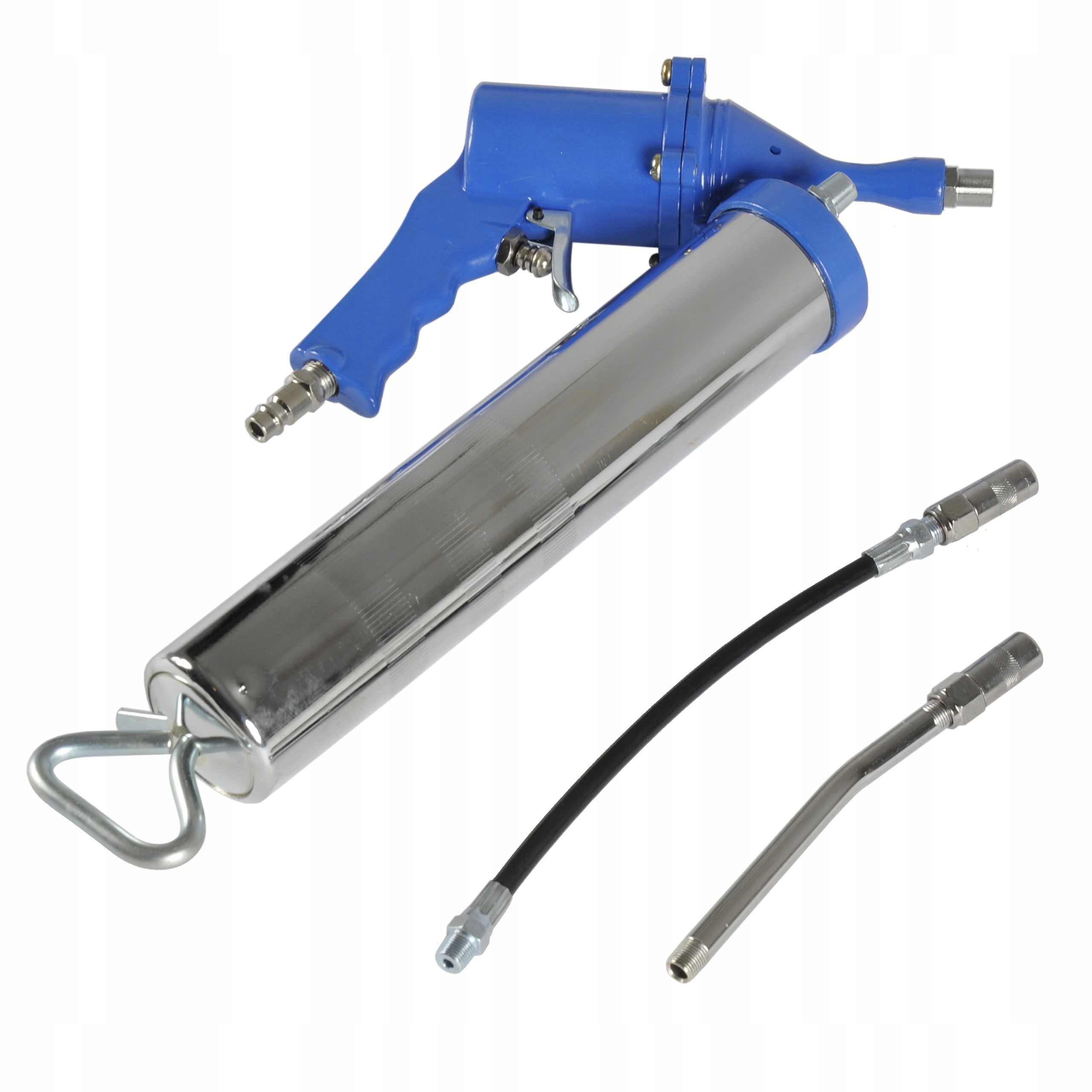 Пневматична мастилка пістолетного типу з регульованим кутом. Постійний потік мастила забезпечується гумовим поршнем, який штовхає мастило в контейнер під постійним тиском. Прилад оснащений вентиляційним клапаном.
