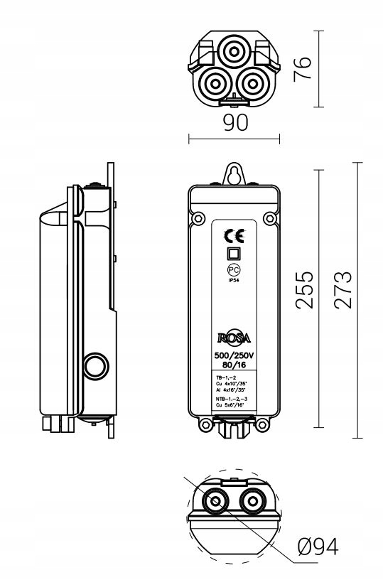 TB-1 однополюсний запобіжник 500V 80A IP54 324010 Rosa