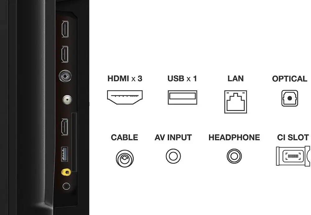 - Мультимедіа через USB: відео до 4K: AVI, WMV, MP4 (H.265, H.264, VP9, AV1,...), MPG, TS, MKV, WebM, VP9; аудіо: WMA, MP3; зображення: HEIF, JPG, PNG, BMP; текстові субтитри.
