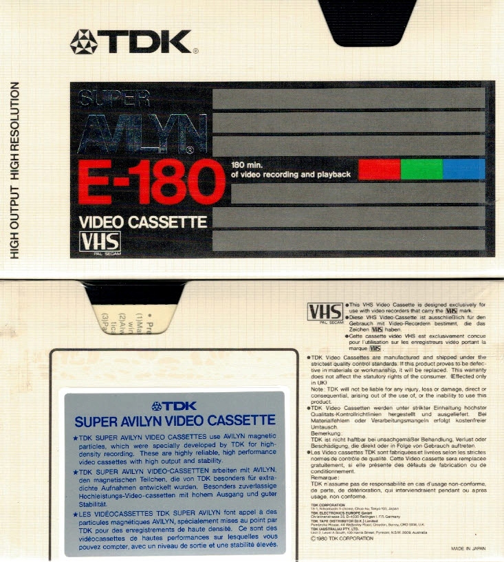TDK Super Avilyn E-180 VHS 180 хв для чіткого запису