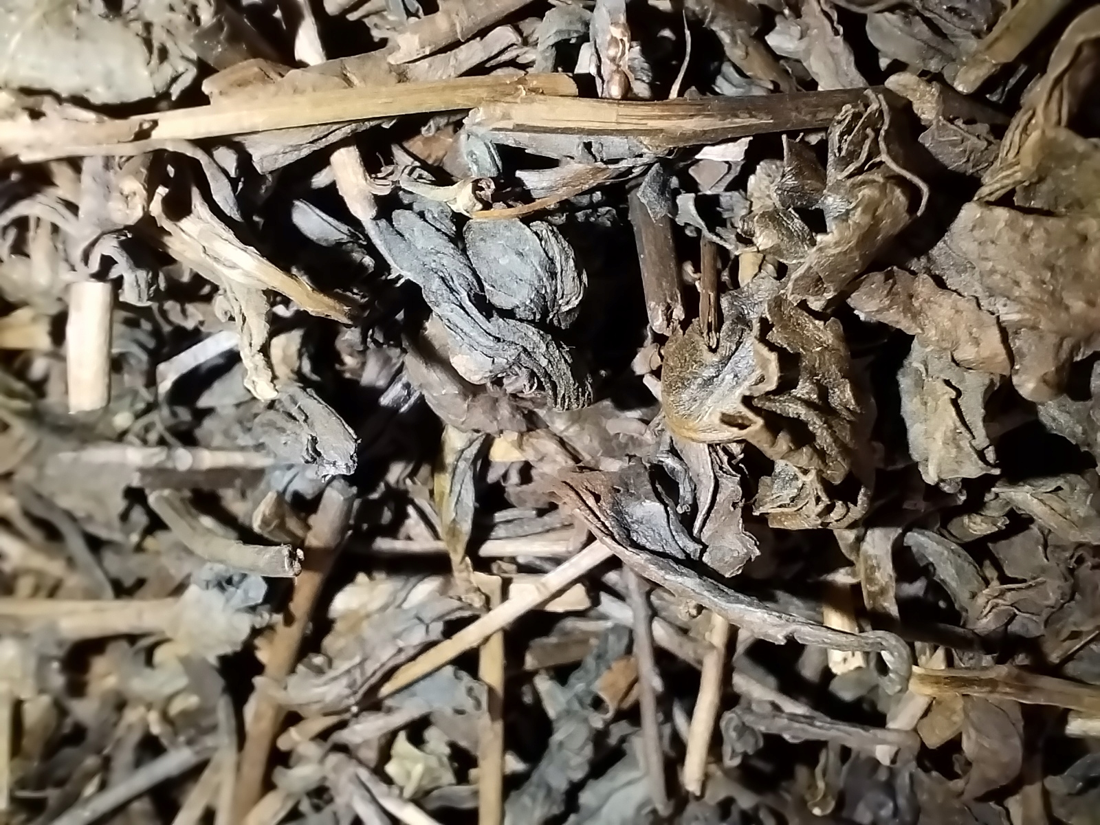 - На фотографіях зображені різні партії висушеного чаю - світло-коричневий і темніший, з великою кількістю стебел, цілими і подрібненими листками.