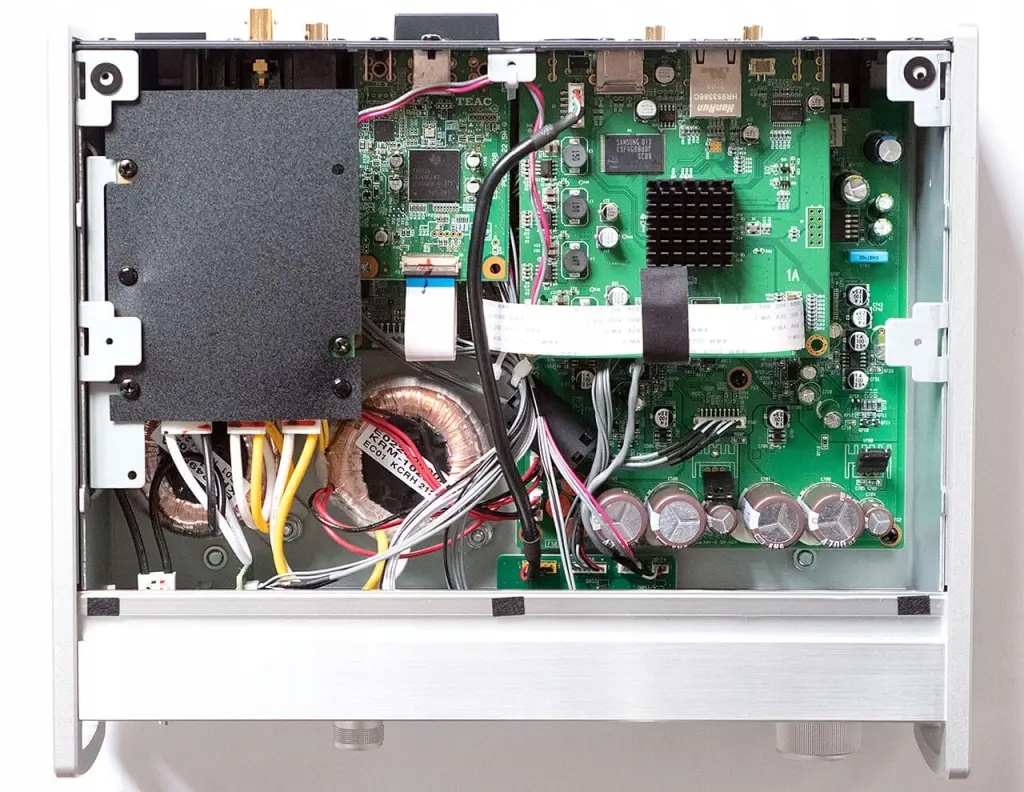 Він успішно поєднує новітні мережеві технології з десятиліттями досвіду TEAC у створенні аудіосистеми в привабливому форматі A4 -пакет розміру. Подвійна моноструктура обробляє стереосигнали високої чистоти, а в секції ЦАП використовується один ES9038 Q2M (виробник ESS Technology) у кожному з лівого та правого каналів.