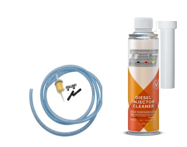Набір TEC 2000 рекомендований як для використання в професійних майстернях і в домашній гараж. Препарати, що входять до набору, тобто очищувач дизельних форсунок, відрізняються високою потужністю, мастильними присадками та ефективністю. Вони створені на основі багатьох сильних мастильних інгредієнтів, які ретельно видаляють залишки забруднень з палива та вуглецевих відкладень, що накопичуються в форсунках. У набір входить Diesel Injector Cleaner, паливний фільтр для шланга, шланг, два пластикових конектора, два металевих хомута.