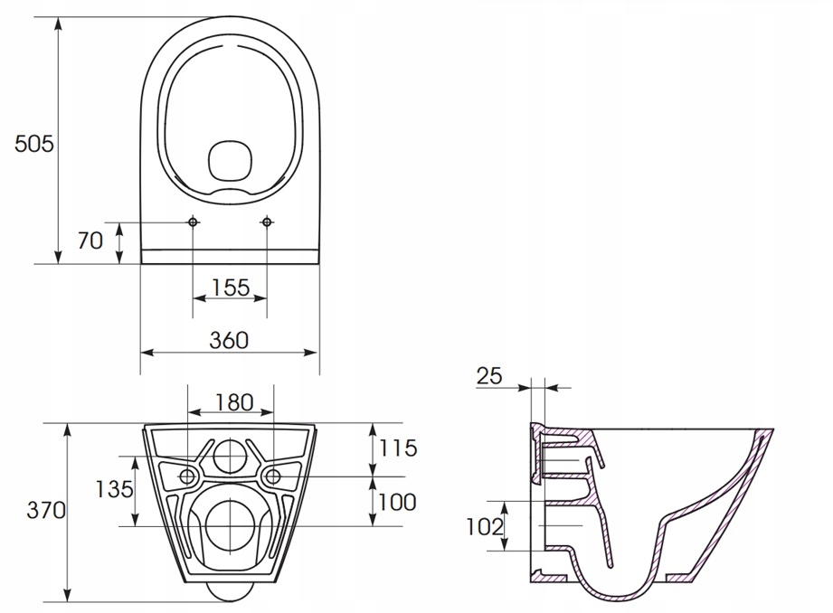 ✔ трипільний клапан закриття; промивання з 3 літрами; Решта води для негайного промивання очищення. Вода